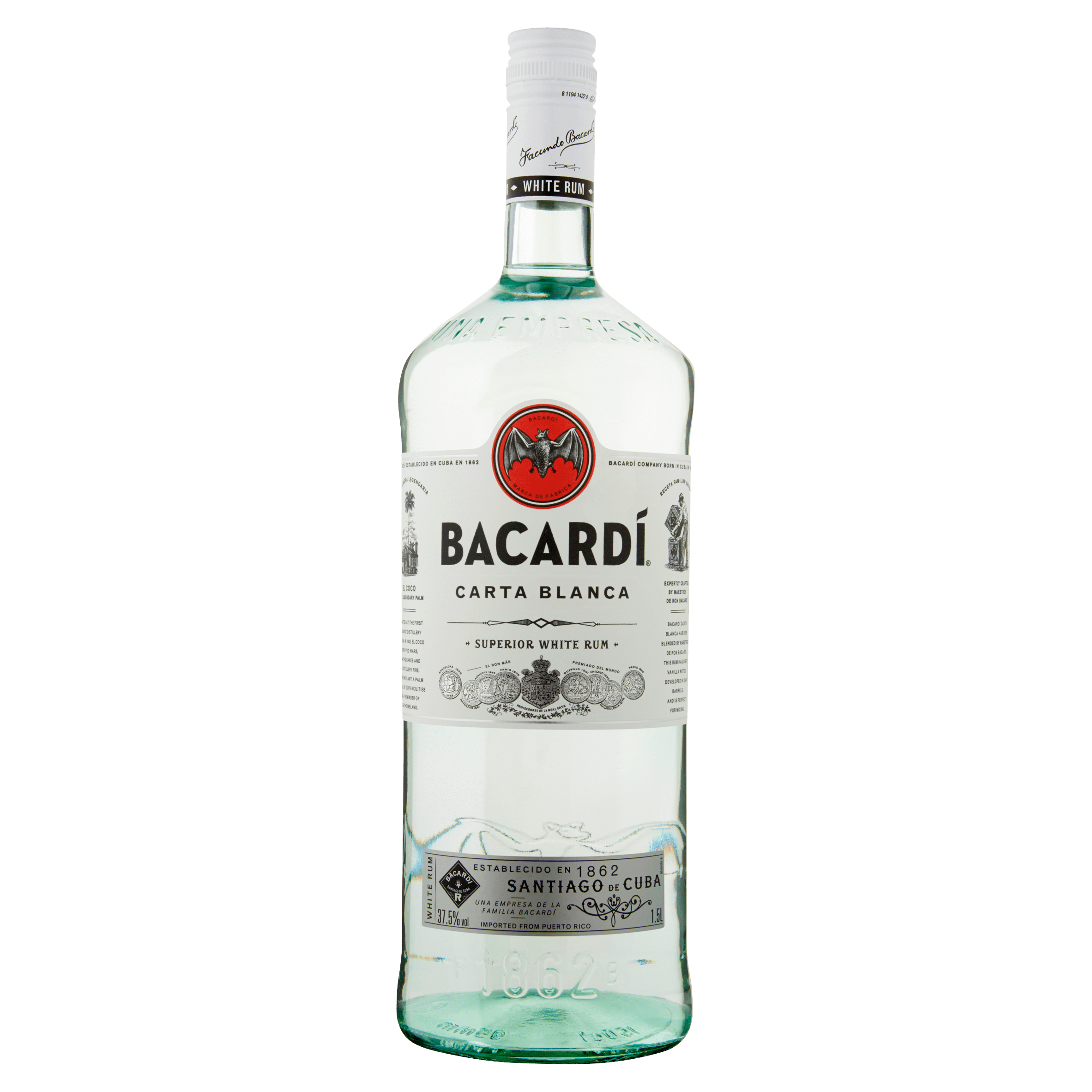 BACARDร Carta Blanca is een lichte en aromatische witte rum, ideale basis voor heerlijke cocktails zoals Mojito en Daiquiri. Ontwikkeld in 1862 door Don Facundo Bacardรญ, deze wereldwijd bekroonde rum heeft onderscheidende tonen van vanille en amandel, gerijpt in eikenhouten vaten. Geniet verantwoord!