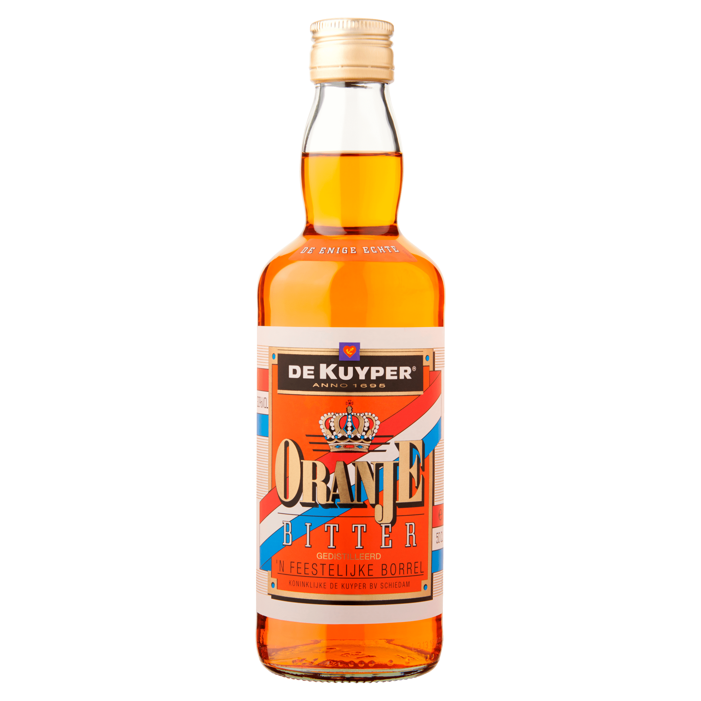 De Kuyper Oranjebitter is een authentieke oranje bitter met een alcoholpercentage van 30%. Anno 1695 maakt Koninklijke De Kuyper deze feestelijke borrel die het beste koel gedronken kan worden uit een borrelglaasje. Perfect voor een speciale gelegenheid of als toevoeging aan cocktails. Let op: alcohol alleen voor 18 jaar en ouder.