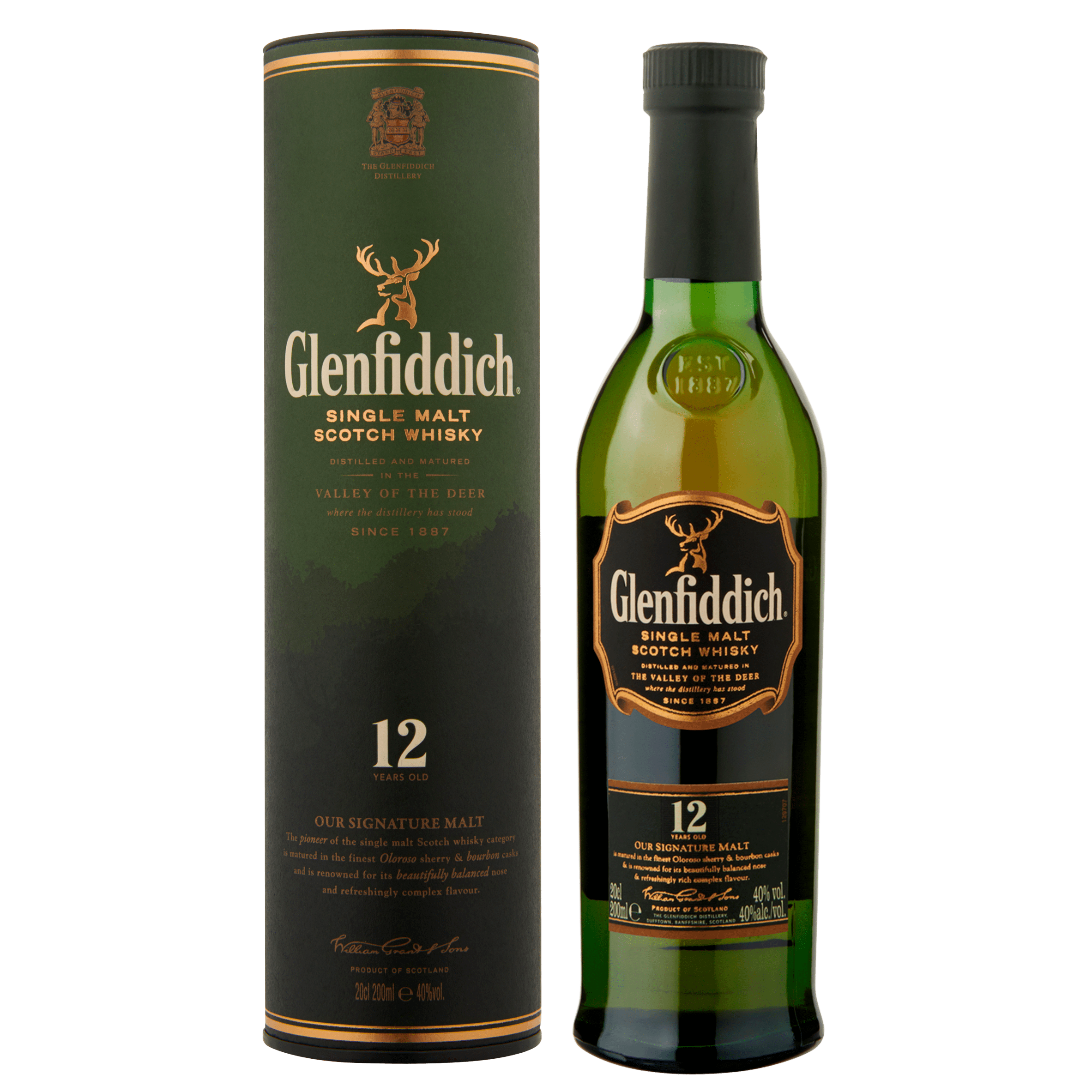 Glenfiddich 12 Years is een elegante en fruitige single malt whisky met een rijke, complexe smaak. Met een alcoholpercentage van 40% is deze whisky perfect om puur te drinken, met ijs of als basis voor een heerlijke cocktail. Beleef de unieke ervaring van deze premium whisky, die vijf jaar rijpt in eikenhouten vaten en subtiele tonen van peer en honing biedt.