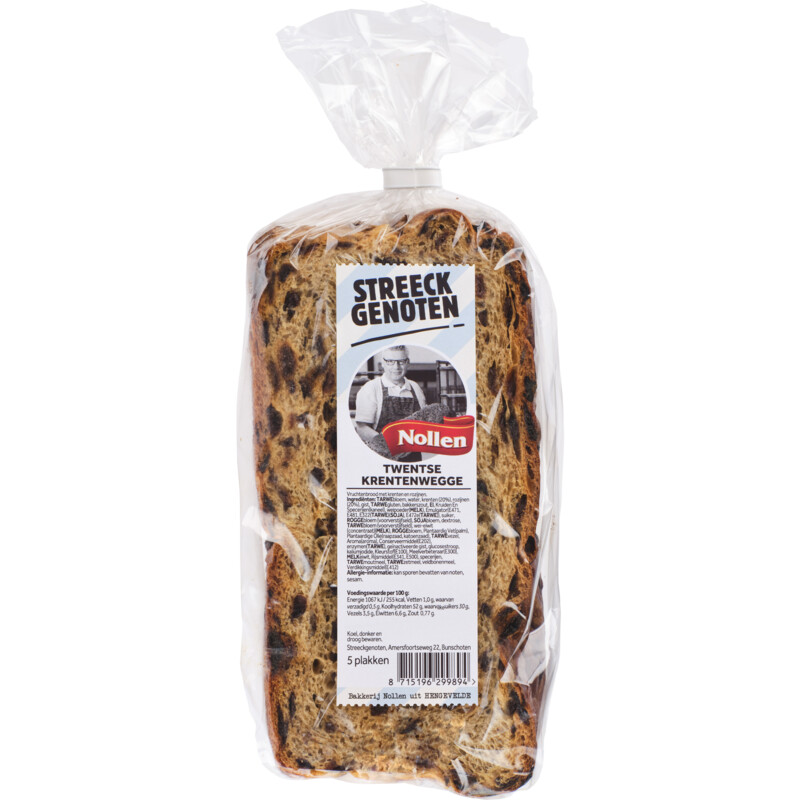 Geniet van de heerlijke smaak van de Streeckgenoten Twentse Krentenwegge, een verrukkelijk vruchtenbrood vol met krenten en rozijnen. Perfect voor bij het ontbijt, als snack of bij de koffie. Dit ambachtelijke brood is gemaakt van zorgvuldig geselecteerde ingrediรซnten en biedt een unieke combinatie van zoetheid en een zachte textuur. Een echte traktatie voor ieder moment van de dag!