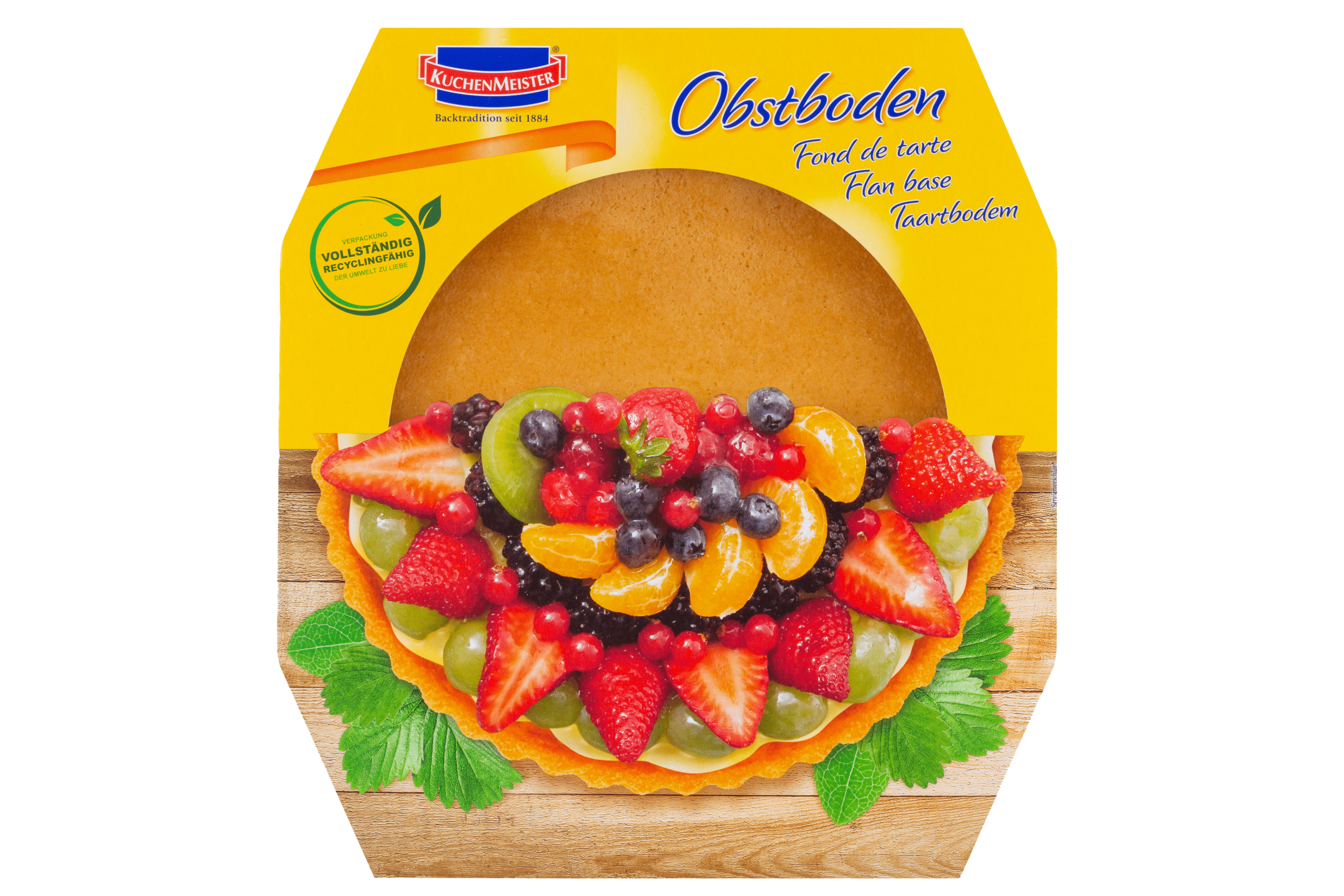 De Kuchenmeister Taartbodem is de ideale basis voor al je heerlijke (fruit-)taarten. Deze kant-en-klare taartbodem is gemakkelijk in gebruik en perfect om te vullen met jouw favoriete ingrediรซnten. Bewaar de bodem op een droge plek, vrij van warmte en vocht, voor de beste smaak en textuur.