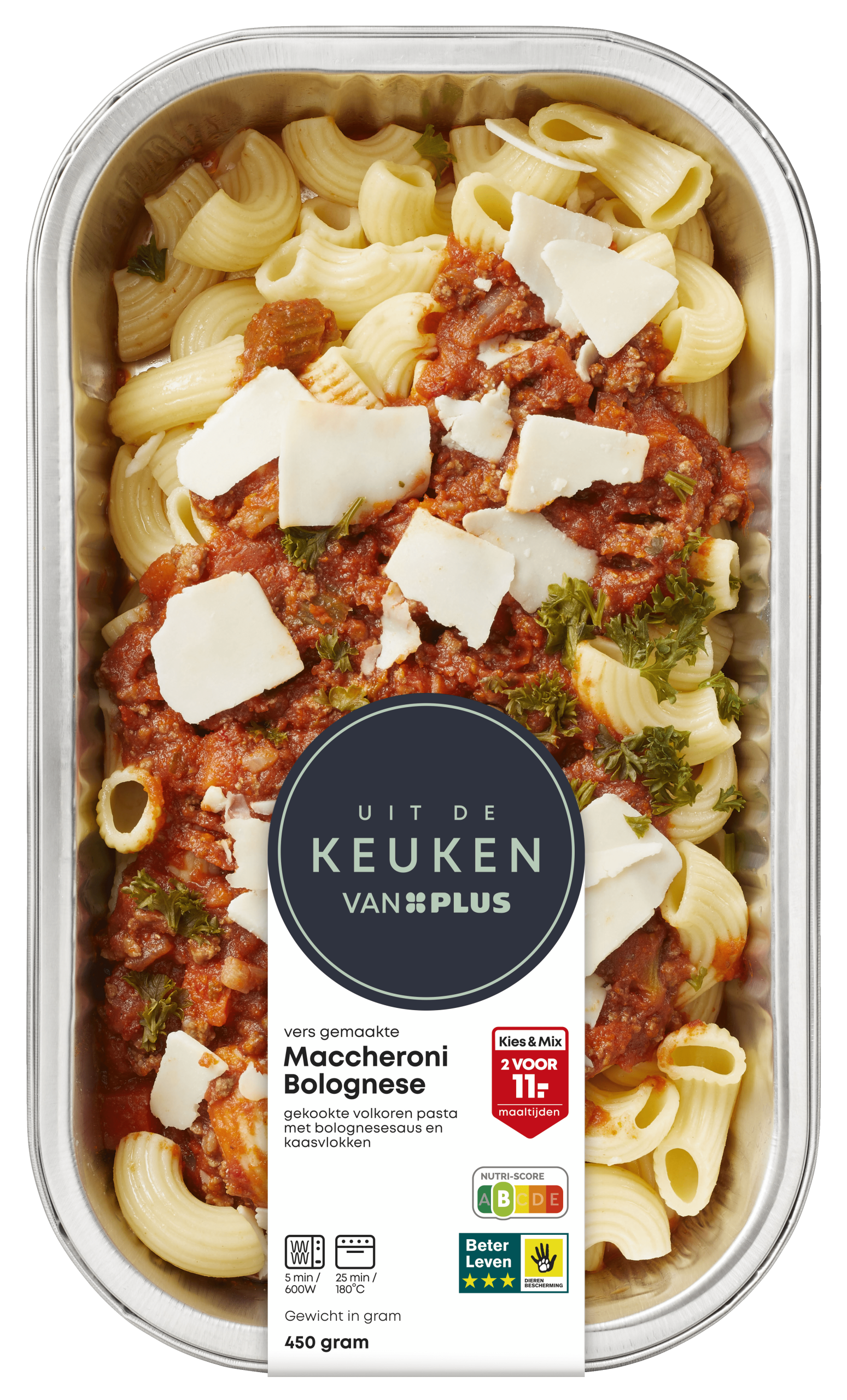 Geniet van de heerlijke Maccheroni Bolognese van Uit de keuken van PLUS, een complete maaltijd bereid met voedzame ingrediënten zoals volkoren macaroni, malse stukken rundvlees en een smakelijke tomatensaus. Dit gerecht is perfect voor een snelle, maar voedzame maaltijd en is binnen enkele minuten bereid in de magnetron of oven. Met een Beter Leven keurmerk van 3 sterren biedt deze maaltijd niet alleen smaak, maar ook kwaliteit. Ideaal voor drukke doordeweekse avonden!