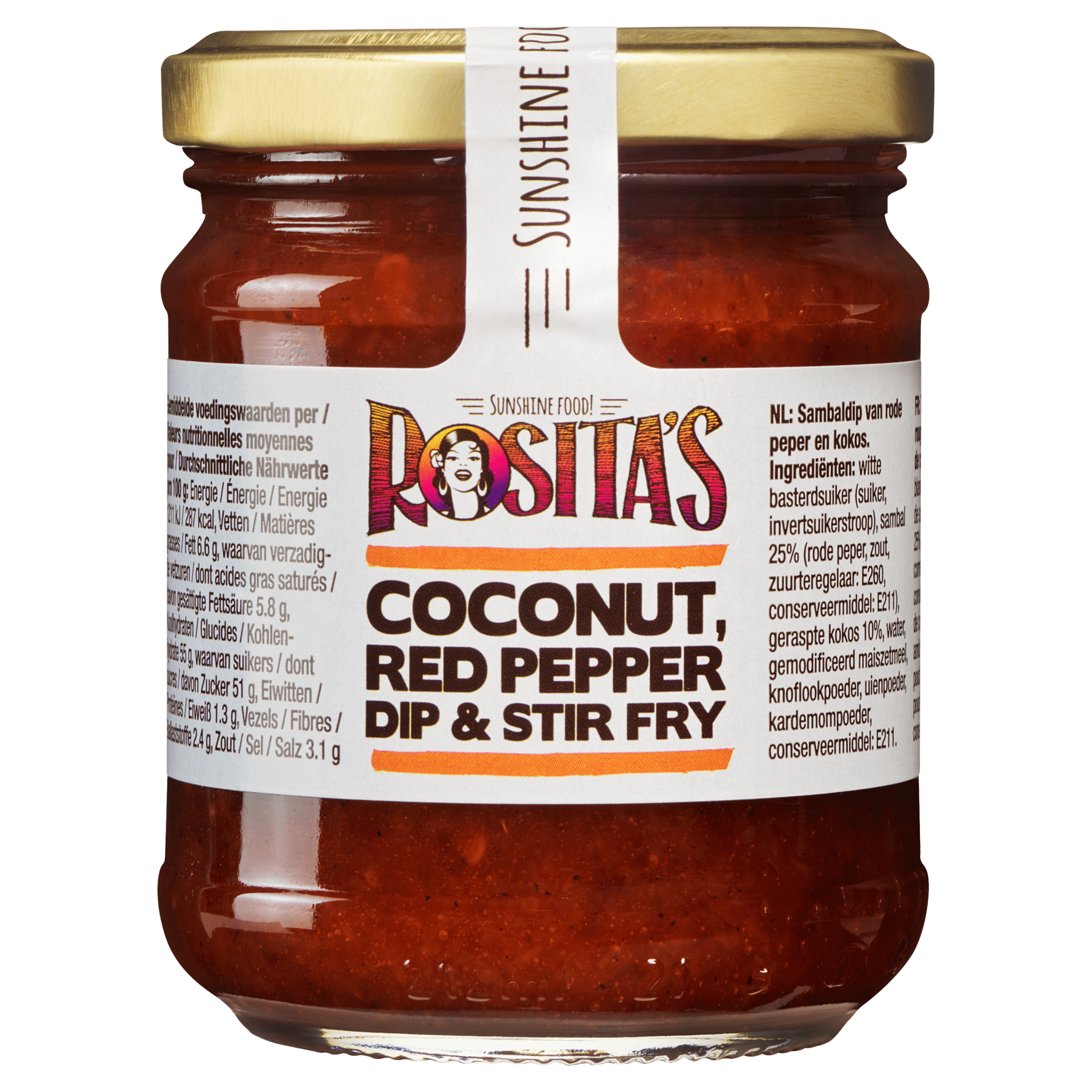 Geniet van de heerlijke Rosita’s Kokos Borreldip, een unieke sambaldip van rode peper en kokos. Deze smaakvolle dip is perfect voor bij borrelhapjes en geeft een tropische twist aan elk feestje. Bewaar de dip koel, droog en donker, en na opening blijft hij maximaal 4 maanden vers in de koelkast.