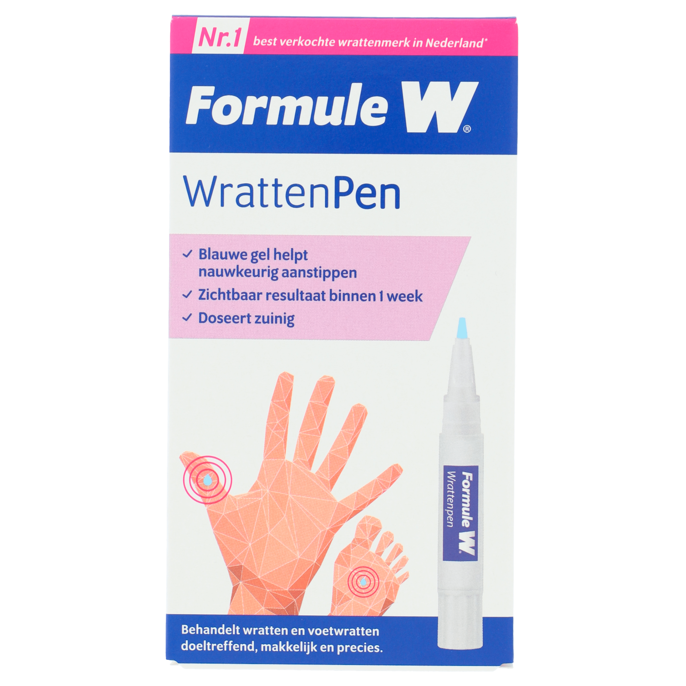 De Formule-W Wrattenpen is een innovatieve oplossing voor het pijnloos behandelen van wratten. Dankzij het handige draaimechanisme en de blauwe gel met hoog percentage Trichloorazijnzuur, brengt u eenvoudig de juiste dosering aan. Geschikt voor volwassenen en kinderen vanaf 4 jaar. Na vier dagen behandeling wordt de normale huid weer zichtbaar. Belangrijke veiligheids- en gebruiksinstructies zijn inbegrepen, zodat u dit product veilig kunt gebruiken.