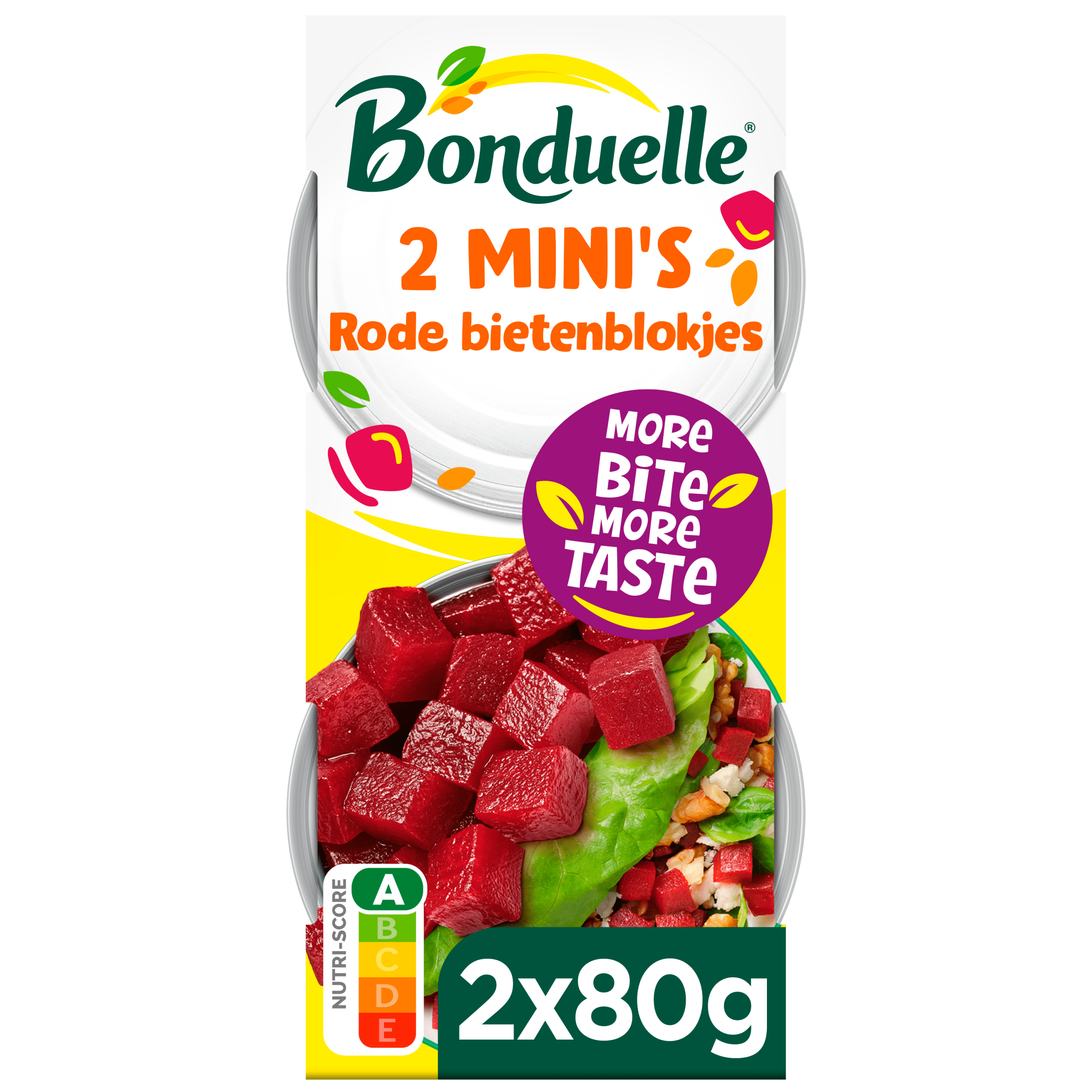 Bonduelle Rode Bietenblokjes zijn stoombereide rode bietjes, verpakt in handige mini’s. Met een Nutri-Score A helpen deze blokjes je niet alleen om meer groenten te eten, maar zijn ze ook een verantwoorde keuze voor jou en de planeet. Perfect voor een snelle dosis groente in je maaltijden!