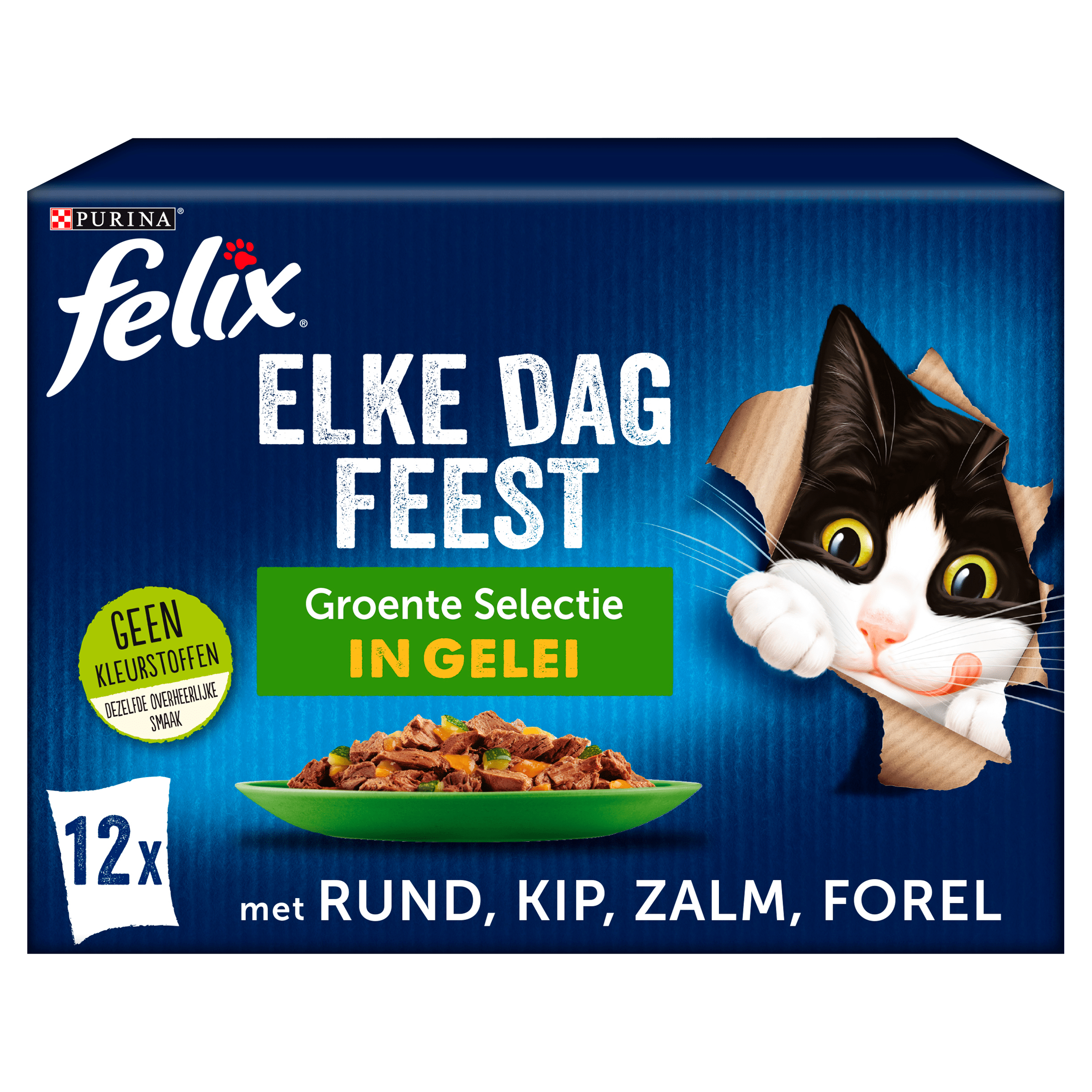 Geef jouw kat het feest dat hij verdient met Felix Elke Dag Feest met groenten! Dit assortiment onweerstaanbare maaltijden, bereid met zachte stukjes in overheerlijke gelei, zorgt ervoor dat jouw kat elke dag geniet van zijn eten. Met een perfecte balans van 100% volledig en gebalanceerd diervoeder, is deze voeding rijk aan Vitamine D en E en bevat het ook omega 6-vetzuren. Felix biedt een variรซteit aan recepten die niet alleen heerlijk smaken, maar ook voldoen aan de voedingsbehoeften van jouw kat. Ideaal voor de actieve kat die houdt van avontuur!