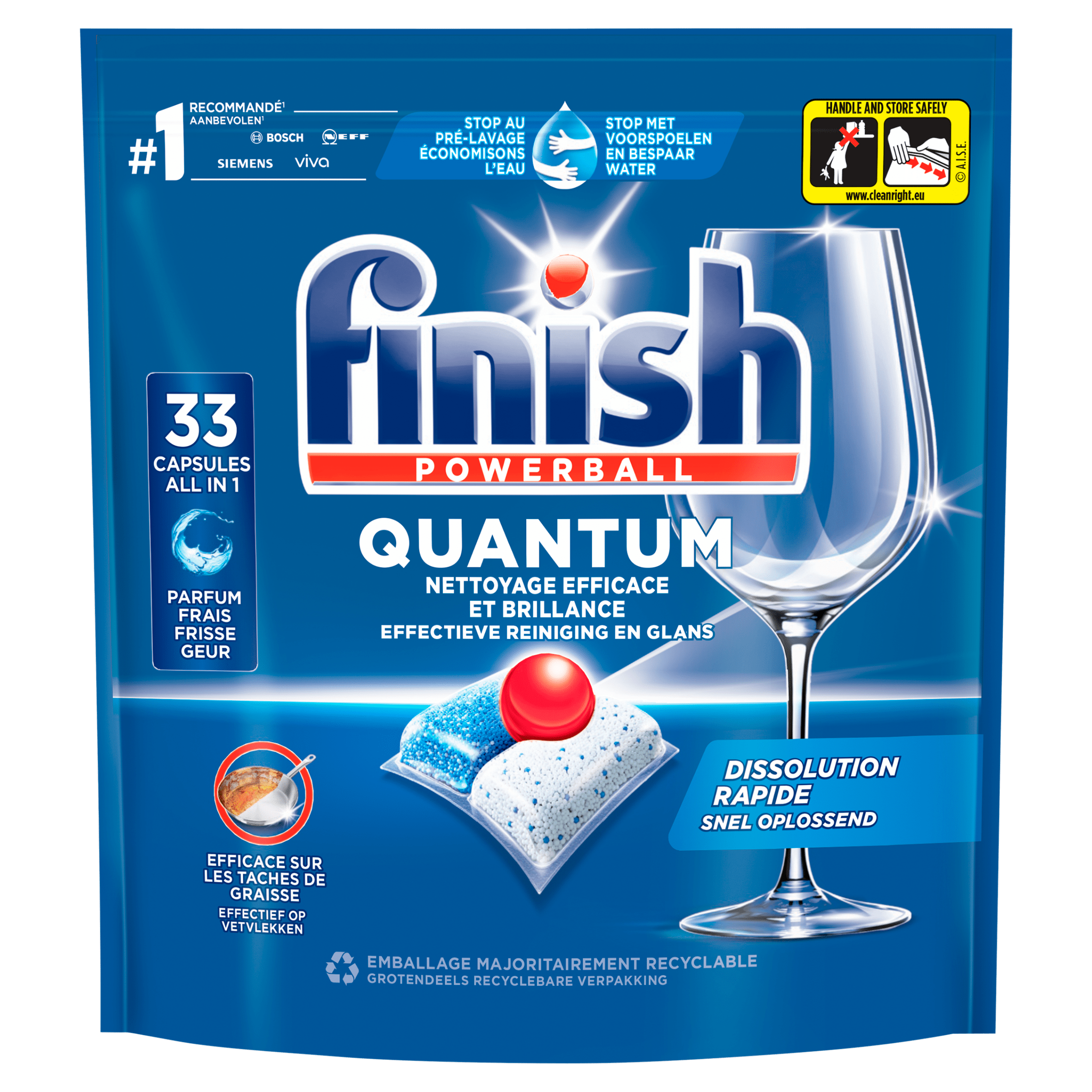Maak kennis met Finish Quantum Regular vaatwascapsules, de oplossing voor een stralend schone vaat! Deze krachtige capsules bieden een diepe reiniging bij elke wasbeurt, zelfs zonder voor te spoelen. Dankzij de innovatieve capsuletechnologie en de unieke Powerball, worden hardnekkige vlekken en voedselresten effectief verwijderd, terwijl je glaswerk een schitterende glans krijgt. Bovendien zijn de capsules geschikt voor korte wascycli en bevatten ze 25% minder chemicaliรซn dan traditionele poedertabletten. Geniet van een effectieve en duurzame vaatwaservaring met Finish.