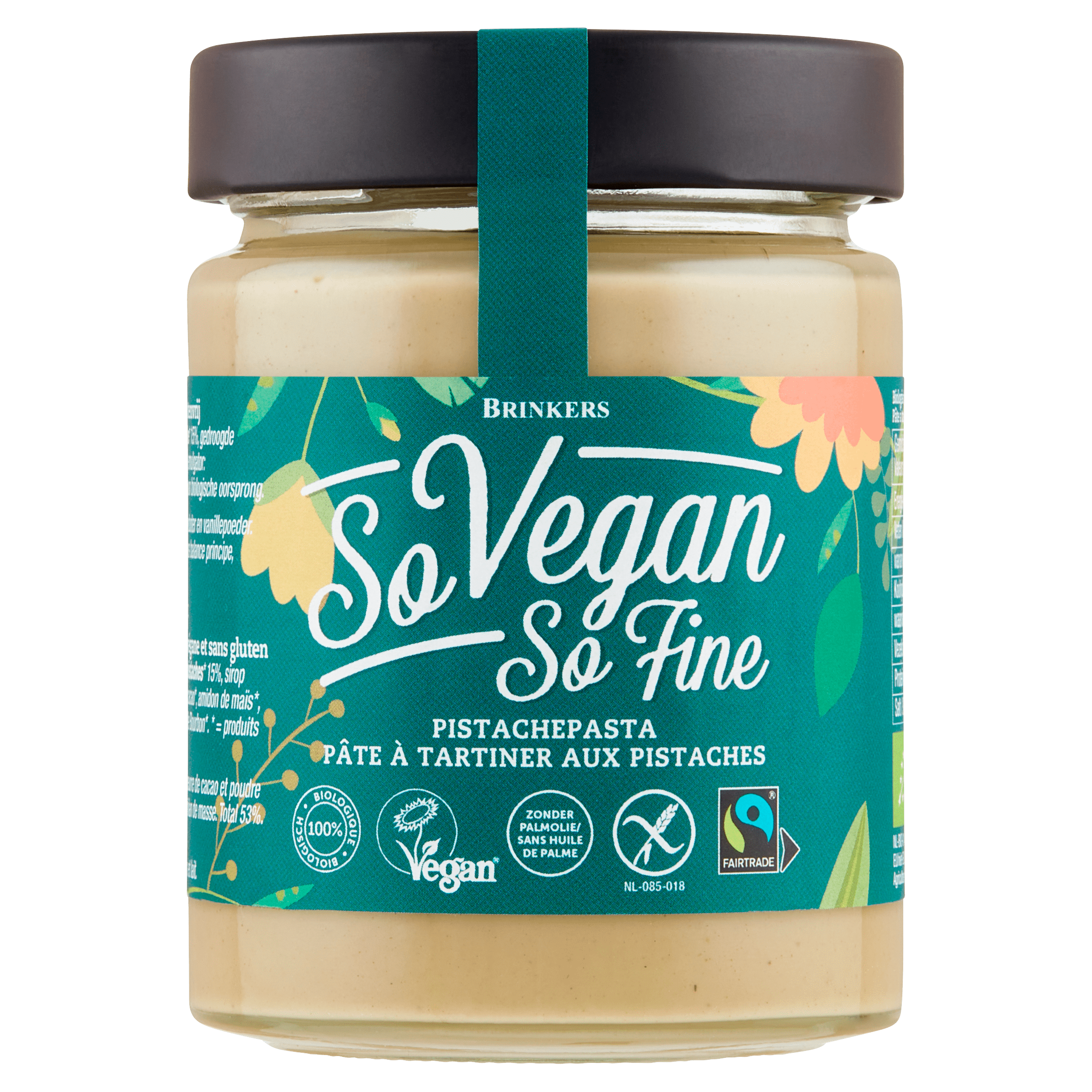 Geniet van de heerlijke en romige smaak van de So Vegan So Fine Pistachepasta! Deze biologische pasta, gemaakt van 100% veganistische ingrediรซnten, bevat maar liefst 15% pistachenoten en is vrij van palmolie. Perfect voor liefhebbers van gezonde voeding, deze pasta kan gebruikt worden als een smeuรฏg beleg, in desserts of als een smaakmaker in gerechten. Bewaar het op een koele, droge plaats en vermijd direct zonlicht om de beste kwaliteit te behouden.