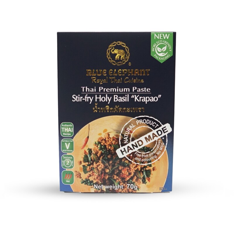 Ontdek de authentieke smaken van Thailand met de Blue Elephant Pad Krapow roerbakpasta. Deze smaakvolle pasta is verrijkt met heilige basilicum en een mix van heerlijke specerijen, perfect voor het creรซren van een pittig en aromatisch gerecht. Voeg eenvoudig kip, groenten en rijst toe voor een snelle, zelfgemaakte maaltijd die je smaakpapillen zal verrassen.