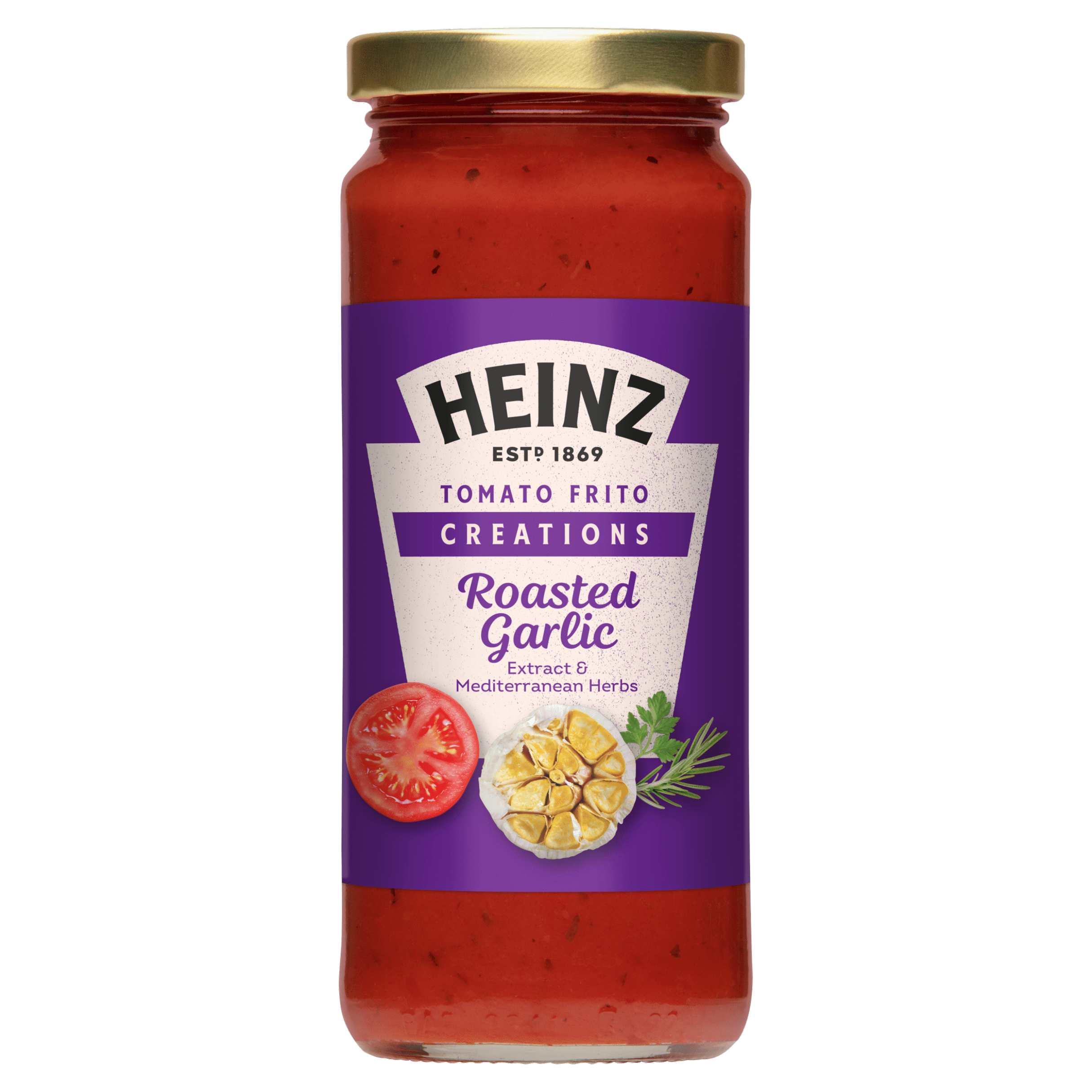 Heinz Tomato Fritoยฎ Creations Roasted Garlic is een smaakvolle tomatensaus, verrijkt met geroosterd knoflook en mediterrane kruiden. Deze saus is perfect voor al jouw pasta’s, ovenschotels en pizza’s en is binnen 20 minuten klaar. Bovendien bevat het alleen natuurlijke smaakstoffen, is het glutenvrij en zonder conserveermiddelen. Geniet van de volle smaak die ontstaat door de verse knoflook en uien 2 uur langzaam te laten sudderen in extra vierge olijfolie.