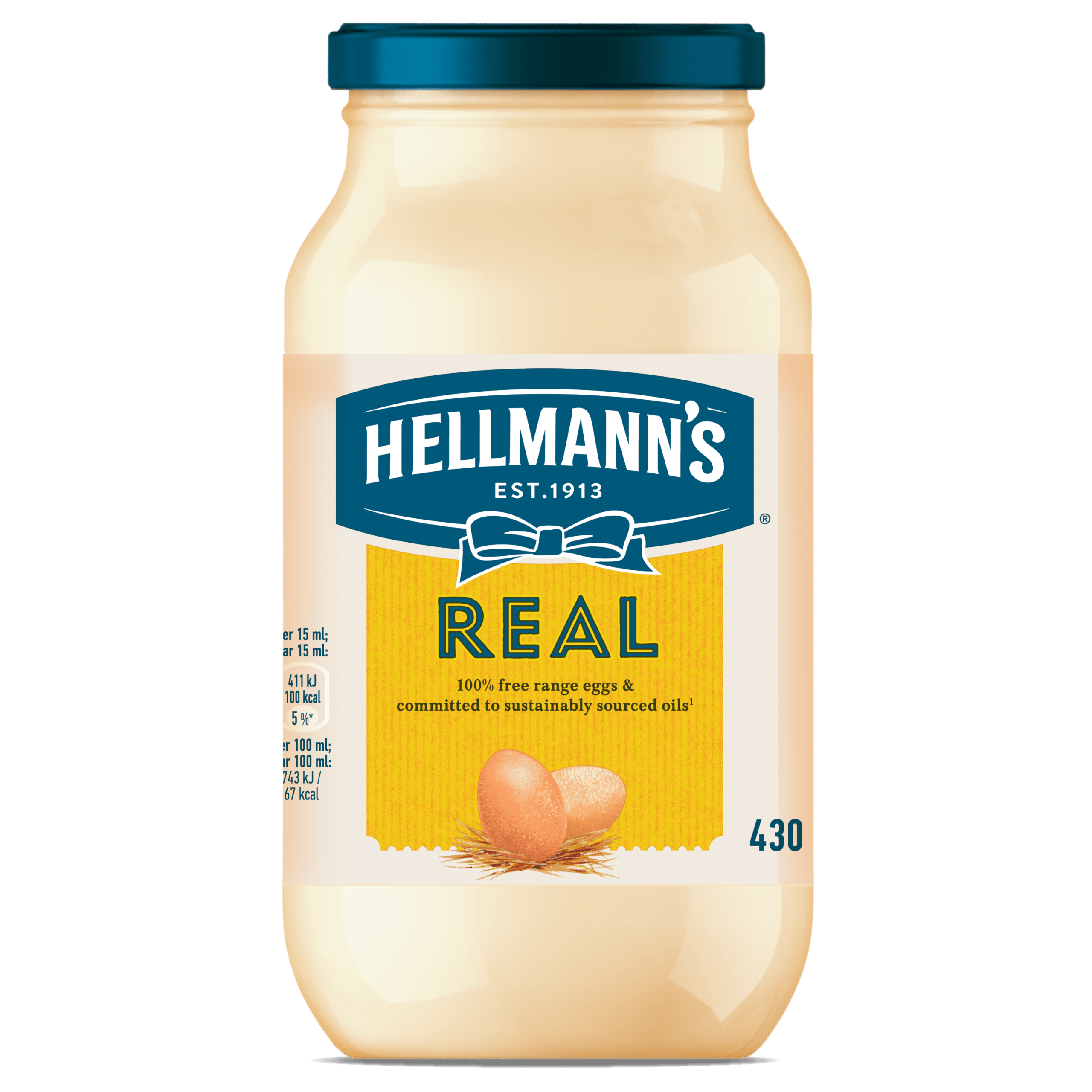 Ervaar de unieke en frisse smaak van Hellmann’s Real Mayonaise, bereid volgens een authentiek Engels recept. Gemaakt van hoogwaardige, pure ingrediรซnten en met 100% vrije-uitloopeieren, biedt deze mayonaise een stevige structuur die perfect is voor jouw hamburger, salade of sandwich. Een geliefde saus onder de echte fijnproevers, die met trots de rijke smaak en kwaliteit van Hellmann’s belichaamt. Na opening gekoeld bewaren voor optimaal gebruik.
