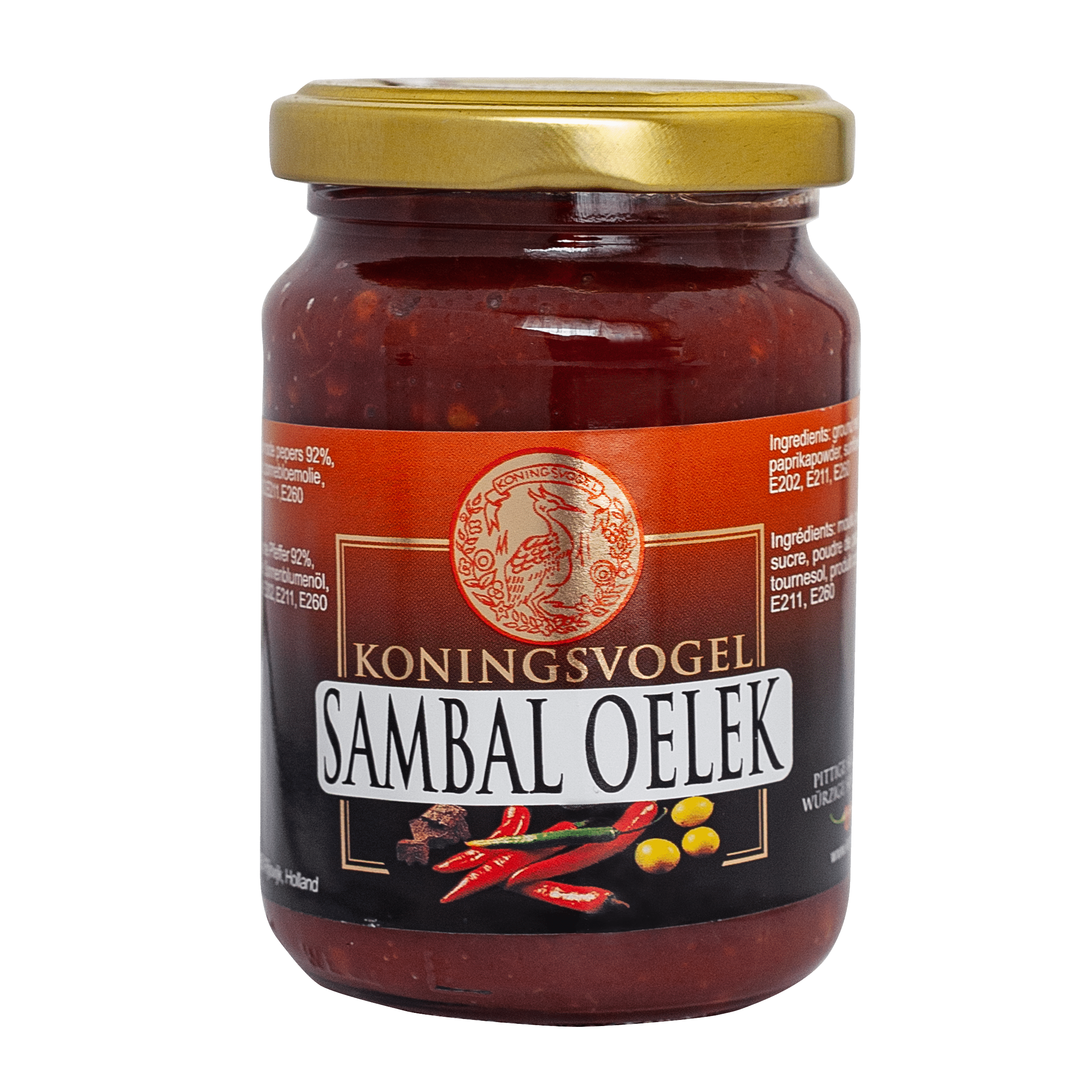 Koningsvogel Sambal Oelek is een authentieke sambal gemaakt van 92% gemalen rode pepers, verrijkt met suiker en paprikapoeder. Deze sambal is perfect om een pittige kick te geven aan al je gerechten. Gebruik het als smaakmaker in curry’s, stoofschotels of als dip bij snacks. Geniet van de intense smaak in elke pot!