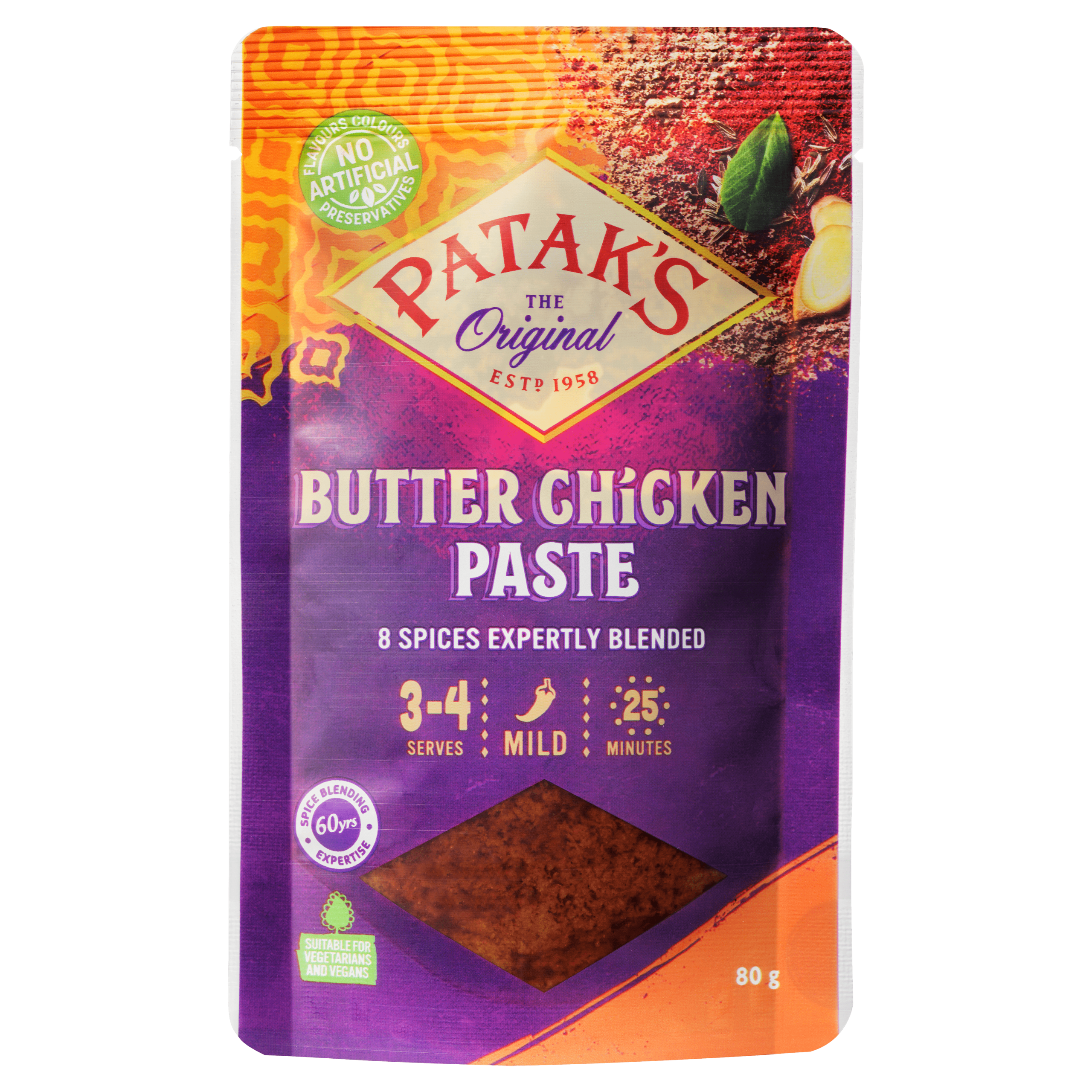 Geniet van de authentieke smaken van India met Patak’s Butter Chicken kruidenpasta. Deze vegan en vegetarische currypaste is perfect voor het creรซren van een rijke en romige saus in een handomdraai. Voeg eenvoudig wat kip of groenten toe voor een smaakvolle maaltijd, klaar in slechts 20 minuten!