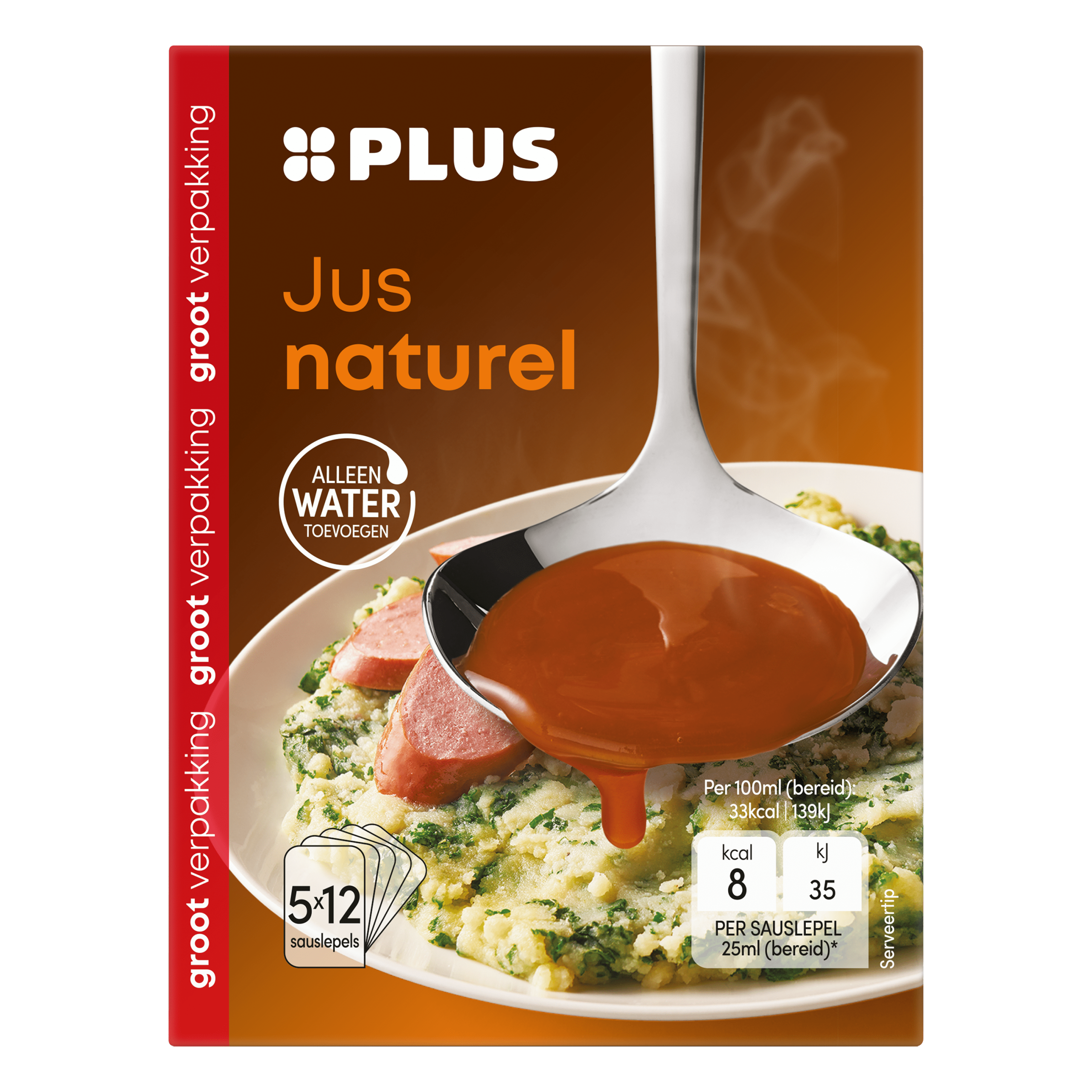 Geniet van de heerlijke en smaakvolle PLUS Jus naturel in een handige 5-pack. Deze mix voor jus is eenvoudig te bereiden en ideaal voor een snelle en lekkere toevoeging aan je maaltijden. Laagblijver met Nutri-Score C en geschikt voor veganisten en vegetariรซrs. Bewaar de mix koel en droog en gebruik de jus als smaakmaker bij vleesgerechten, aardappelen of groentegerechten.