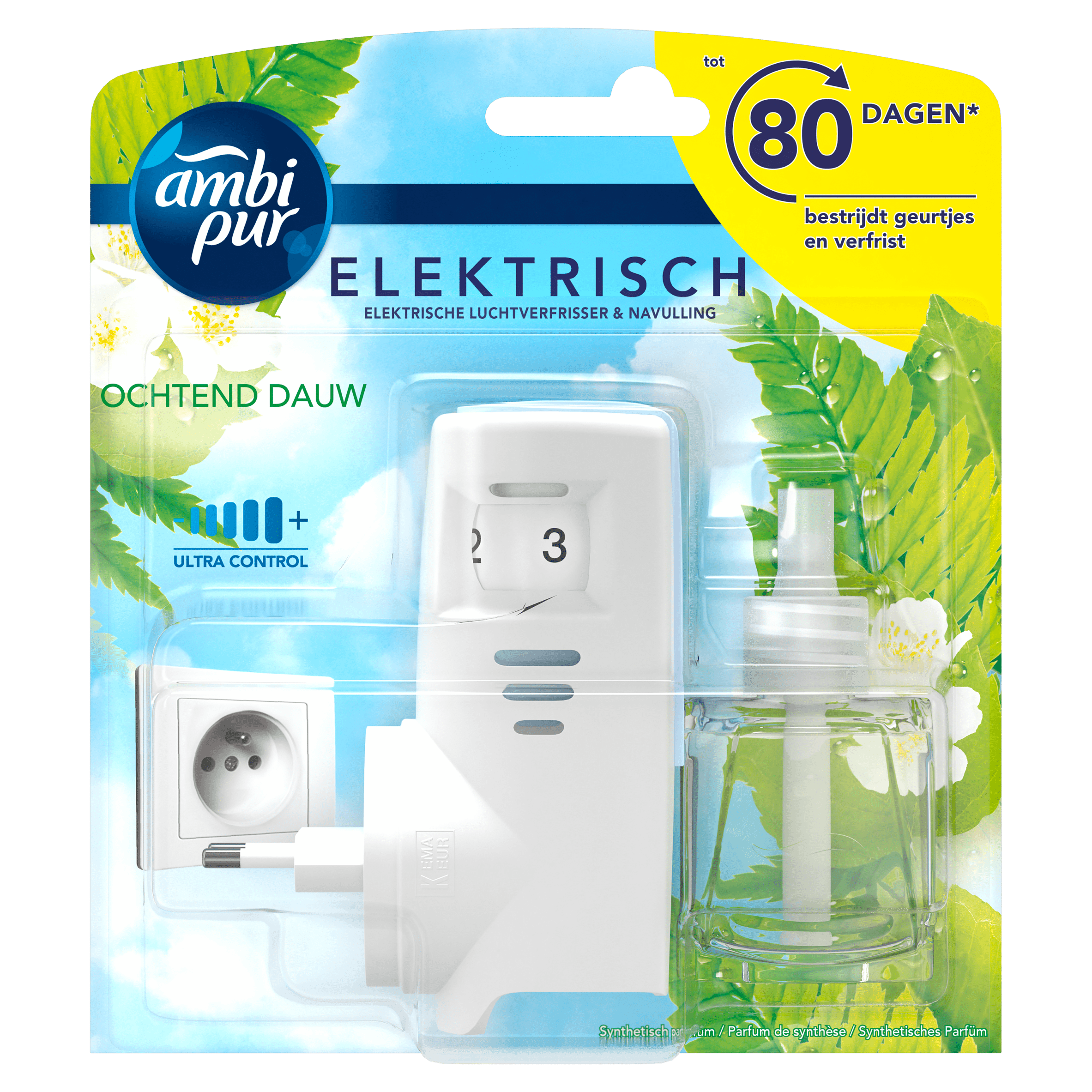 Ervaar een frisse ochtend met de Ambi Pur Luchtverfrisser Ochtend Dauw Startset. Deze elektrische luchtverfrisser met de unieke OdourClear-technologie verwijdert hardnekkige geuren en laat tot 80 dagen een subtiele parfum achter. Geรฏnspireerd door de frisheid van een vroege ochtendwandeling, zorgt deze geur voor een aangename sfeer in huis. Het apparaat is eenvoudig in gebruik en met de verstelbare geursterkte is de intensiteit naar wens aan te passen.
