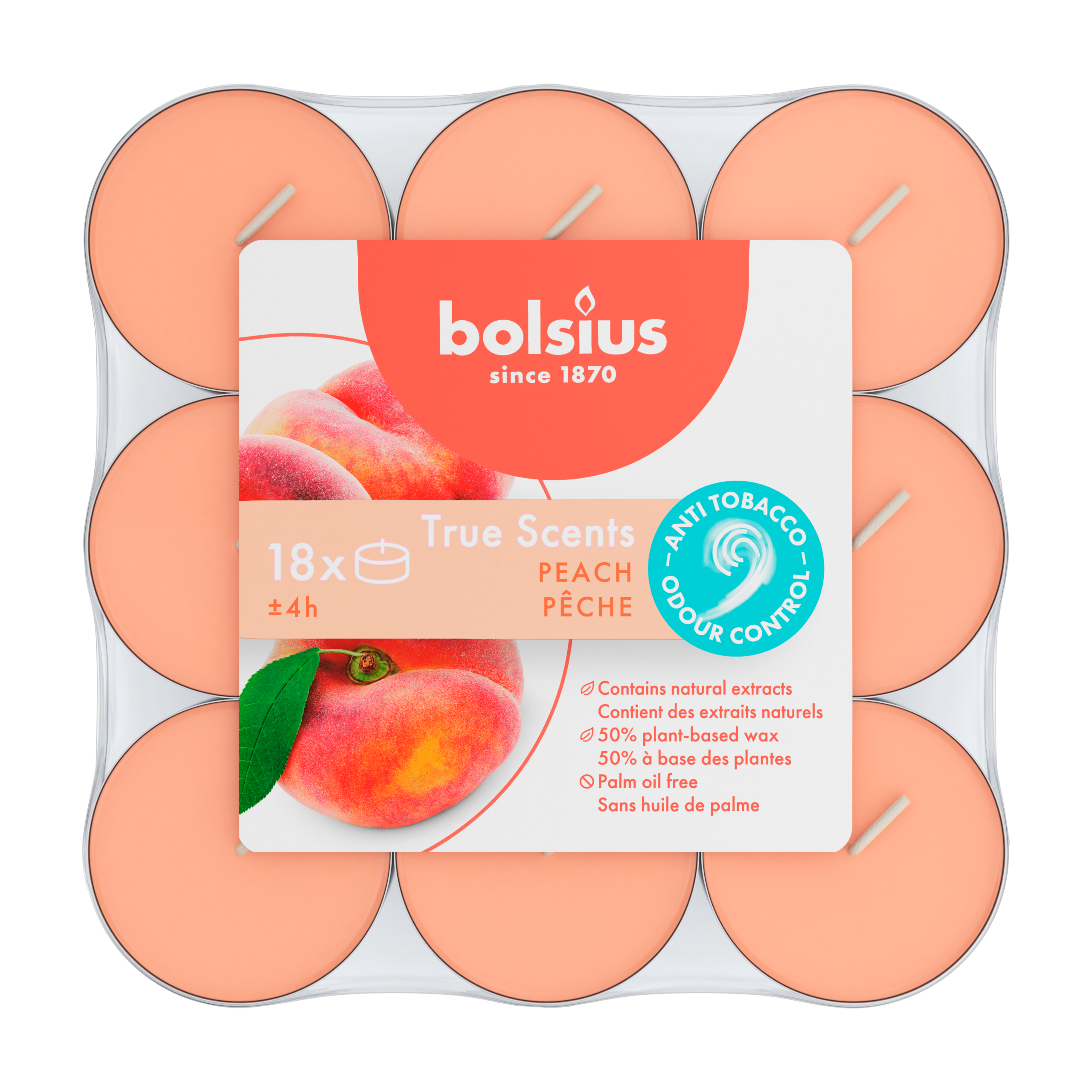 Laat je omhullen door de heerlijke geur van perzik met de Bolsius Geurtheelichten. Deze set bevat 18 geurtheelichten die je helpen een warme en uitnodigende sfeer te creรซren in huis. Perfect voor gebruik in een glazen houder om de geur optimaal te laten verspreiden. Geniet van een ontspannen ambiance met de natuurlijk geur.