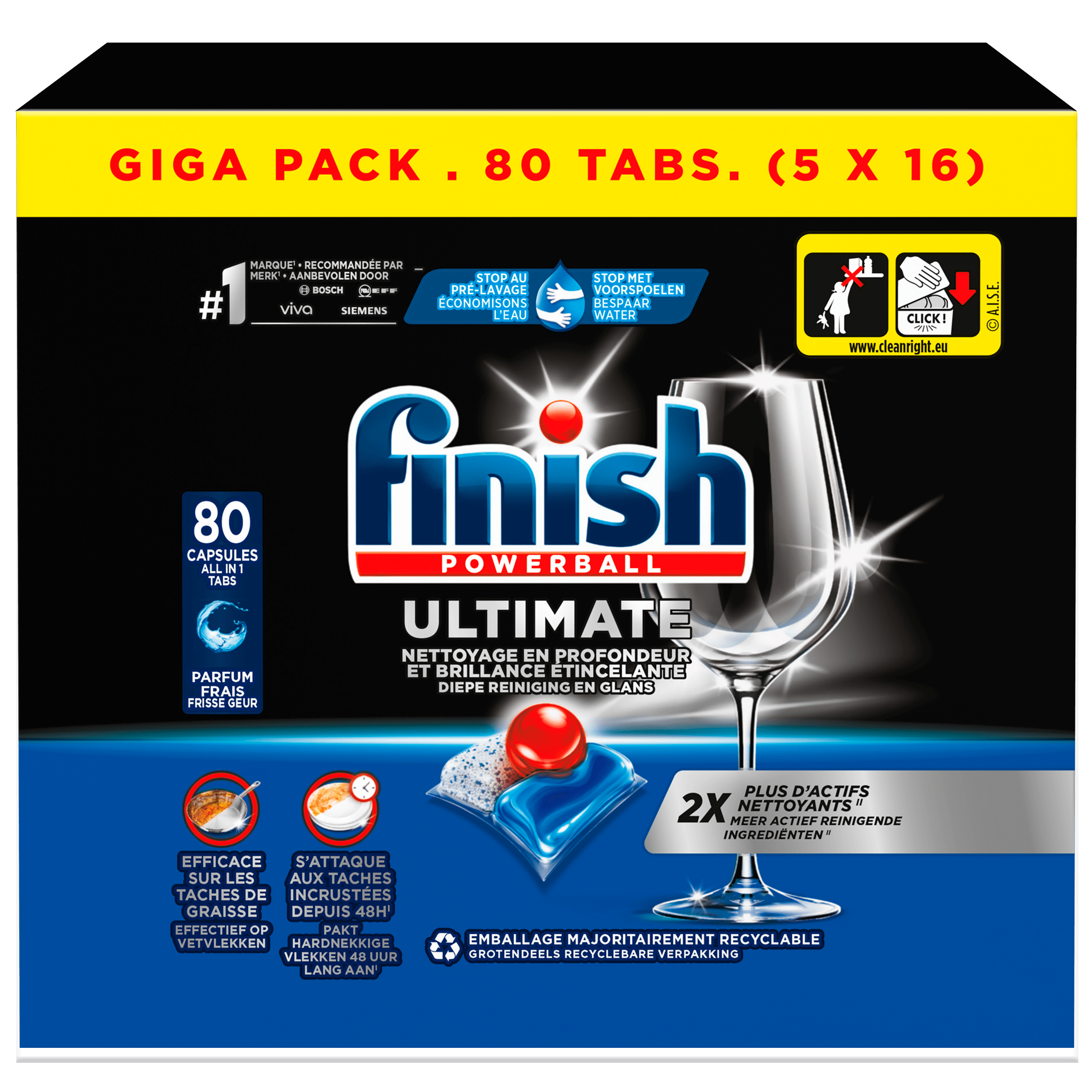 De Finish Ultimate Vaatwascapsules bieden krachtige reiniging en glans voor uw vaat. Met deze Giga Pack van 80 capsules haalt u een uiterst efficiรซnte oplossing in huis die zelfs de hardnekkigste etensresten moeiteloos verwijdert. Ideaal voor een glanzend resultaat zonder dat er extra spoelglansmiddel nodig is. De capsules zijn eenvoudig in gebruik en zorgen voor een optimale werking in uw vaatwasser.