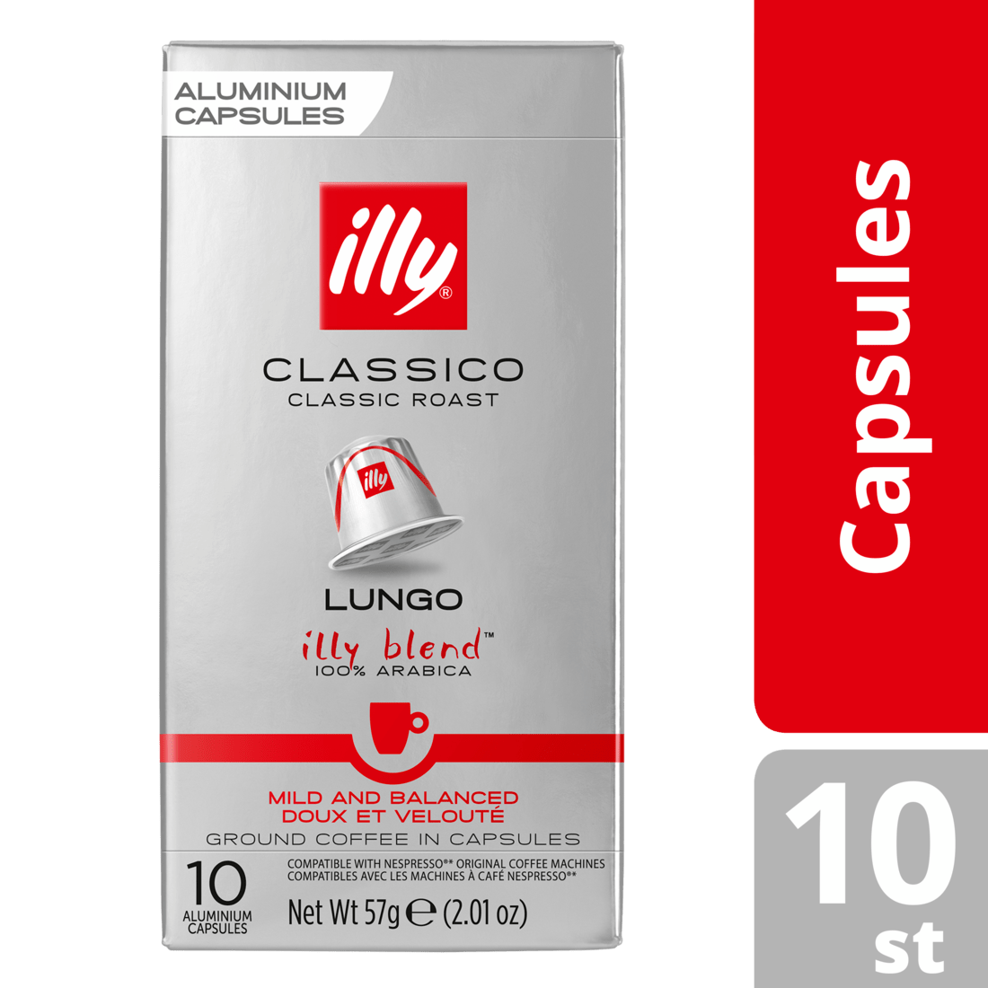 Geniet van de volle en aromatische smaak van Illy Lungo Classico koffiecups. Deze gemalen koffie in capsules is perfect voor use in Nespresso koffiemachines. Elke doos bevat 10 koffiecups, waardoor je eenvoudig en snel kunt genieten van een heerlijke lungo. Verpakt onder beschermende atmosfeer voor de beste versheid.