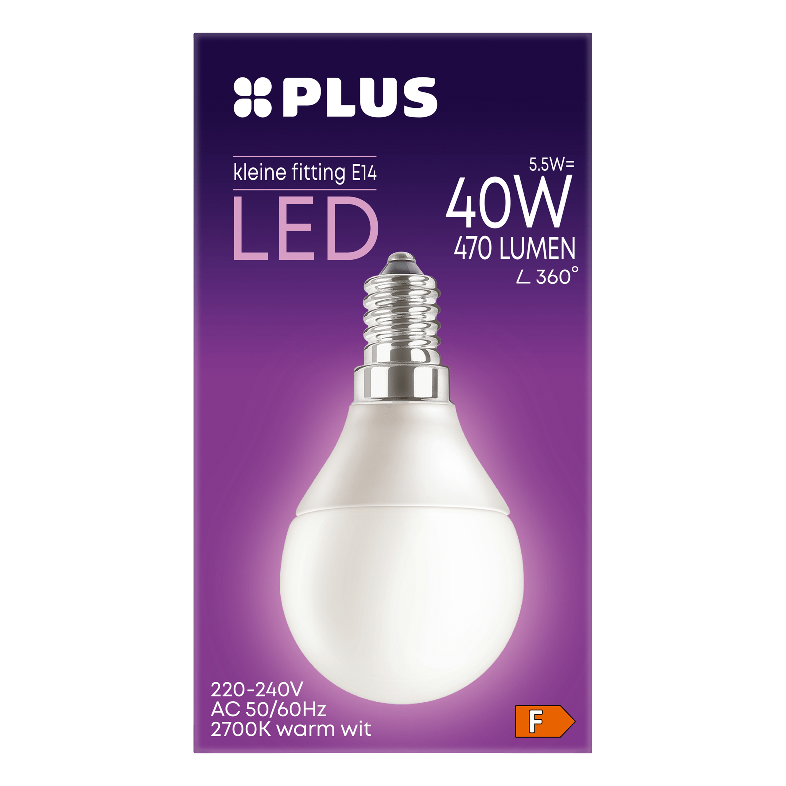 Deze PLUS LED lamp van 40W met een kleine E14 fitting is ideaal voor diverse verlichtingstoepassingen. Met een diameter van 48 millimeter en een kleurtemperatuur van 2700 Kelvin creรซert deze lamp een warm en gezellig licht. Het vermogen komt overeen met een traditionele gloeilamp van 120W, maar met slechts 40 kWh verbruik. De lamp heeft een nuttige lichtstroom van 470 lumen en heeft een onmiddellijke opwarmtijd, waardoor je snel kunt genieten van helder licht in elke ruimte.
