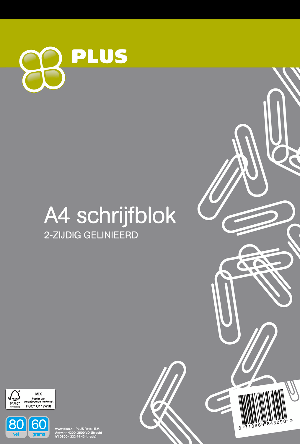PLUS Schrijfblok A4 80 vel FSC – Plus