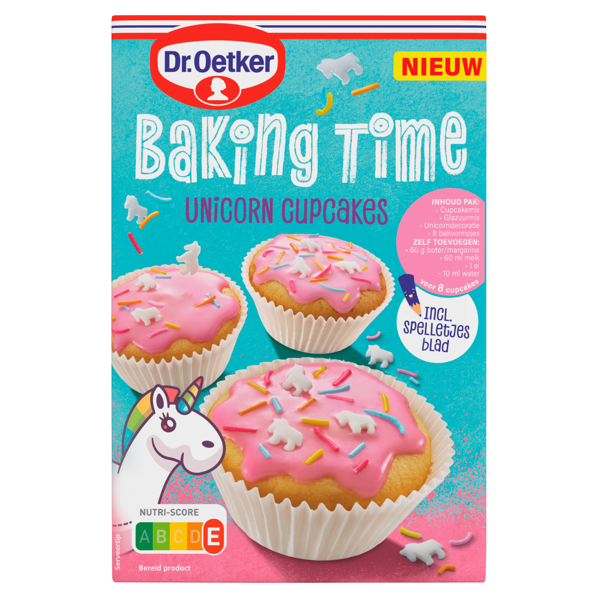 Maak samen met de kinderen heerlijke en kleurrijke unicorn cupcakes met de Dr. Oetker Baking Time bakmix. Deze makkelijke mix bevat alles wat je nodig hebt om 8 vrolijke cupcakes te bakken, inclusief schattige vormpjes en een leuk spelletjesblad om de tijd te doden tijdens het wachten. Perfect voor een gezellige bakactiviteit thuis!