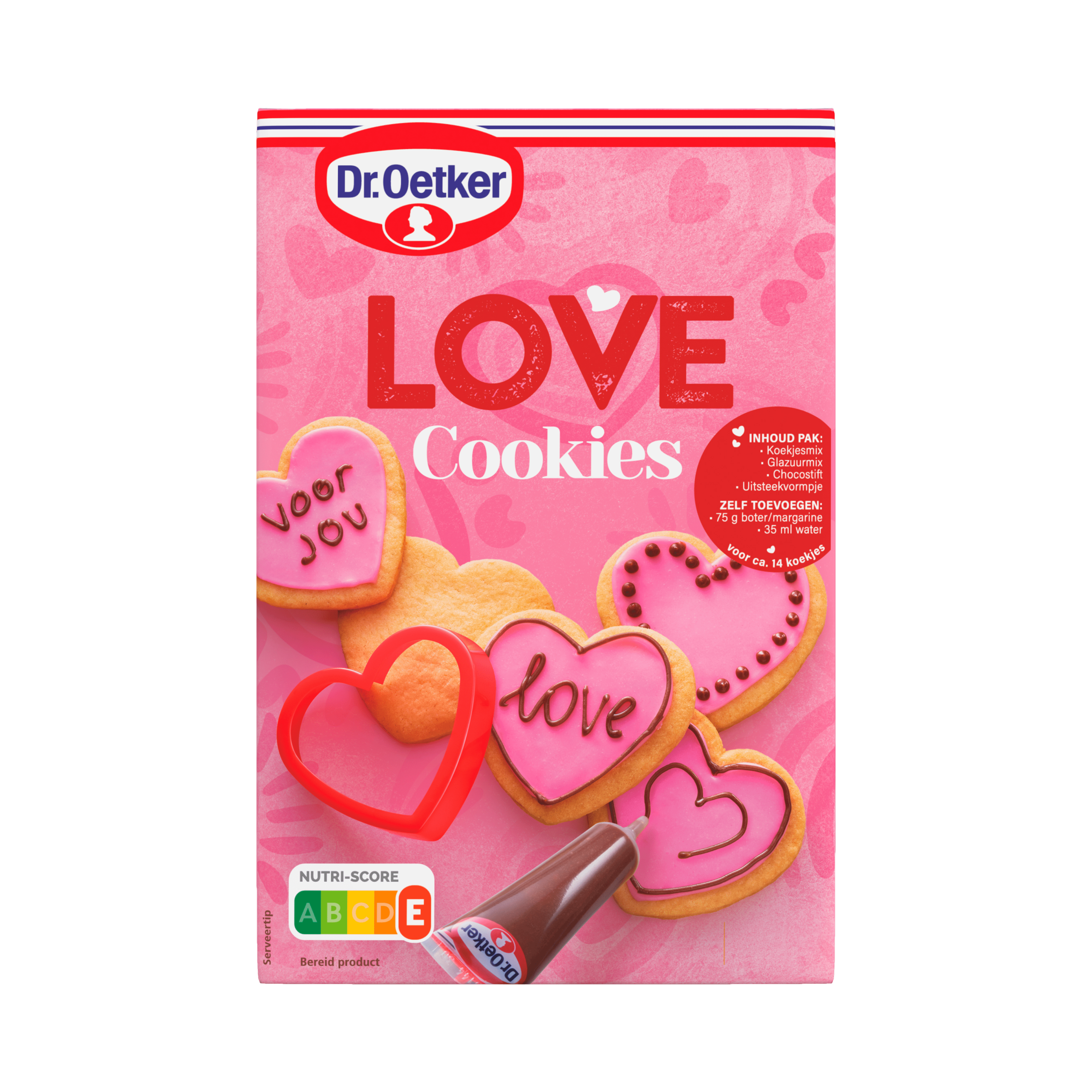 Bak kleurrijke hartjes koekjes met de Dr. Oetker Love Cookie Set! Deze handige mix maakt het eenvoudig om ongeveer 14 schattige hartjeskoekjes te bereiden. Voeg simpelweg 75 g boter en 35 ml water toe, en laat je creativiteit de vrije loop met het bijgeleverde roze glazuur en de chocostift. Ideaal voor feestelijke gelegenheden zoals Valentijnsdag, verjaardagen en moederdag.