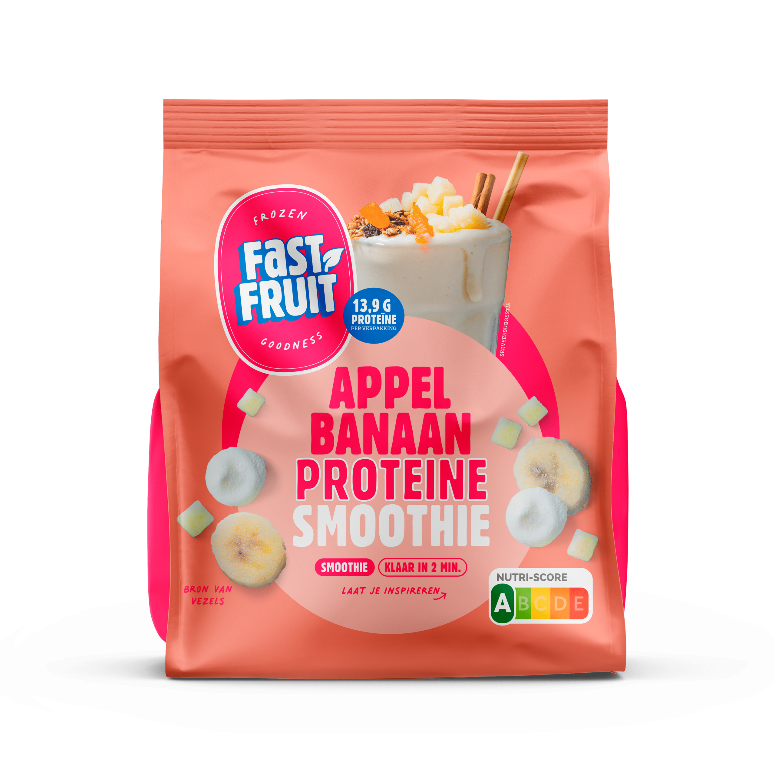 Geniet van de heerlijke combinatie van appel en banaan in de Fast Fruit Proteรฏne Smoothie. Dit vriesverse product is eenvoudig te bereiden: voeg simpelweg water, sap of plantaardige zuivel toe en je hebt binnen 2 minuten een voedzame smoothie. Met een Nutri-Score A staat deze smoothie garant voor gezonde energie. Perfect voor een snelle tussendoortje of als aanvulling op je ontbijt!