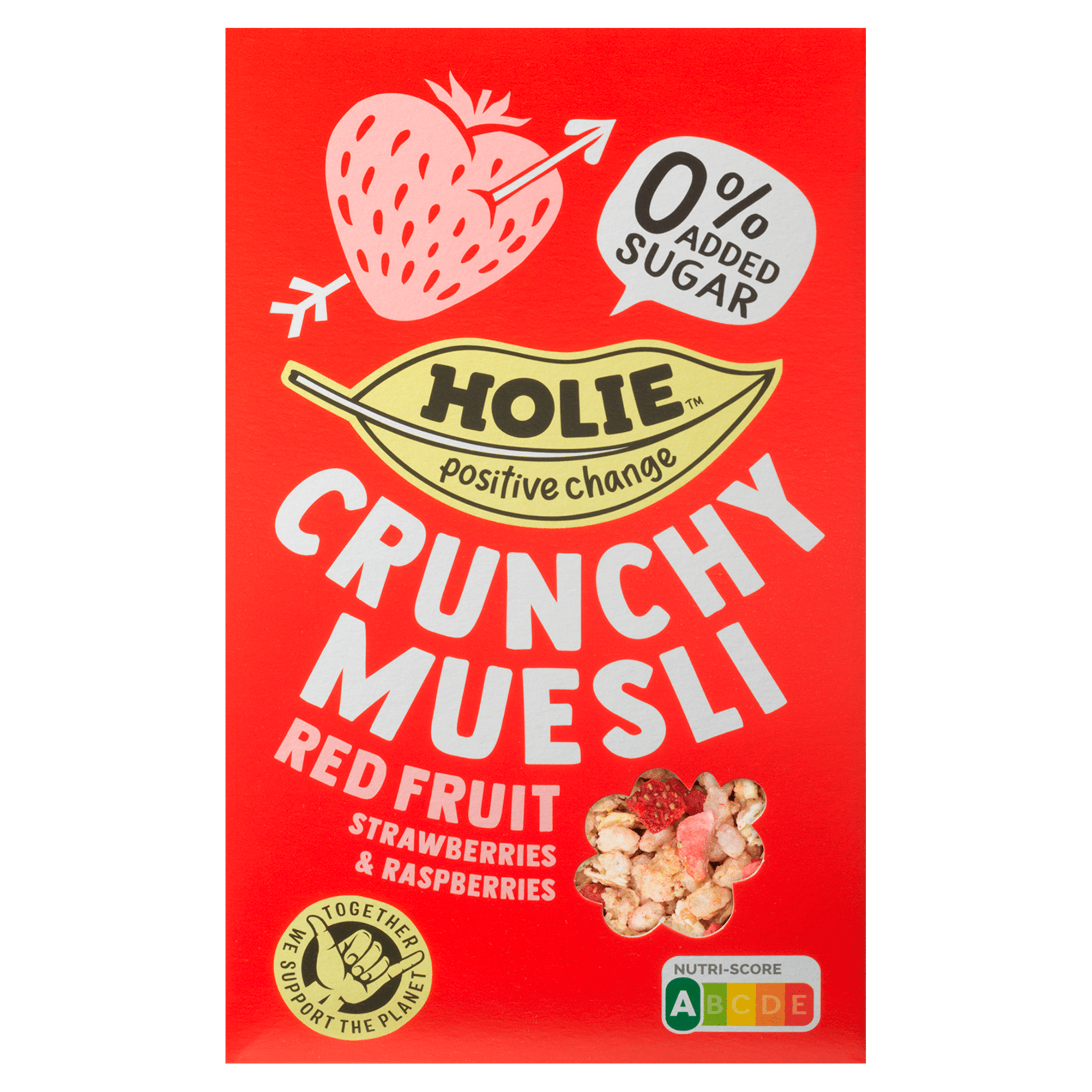 Geniet van een heerlijke start van je dag met Holie’s Crunchy Muesli Red Fruit. Deze krokante muesli is rijk aan volkoren granen, zoals havervlokken en speltvlokken, en verrijkt met gevriesdroogde aardbeien en frambozen. Perfect voor een voedzaam ontbijt of als snack door de dag heen. Met een Nutri-Score A en een vegan samenstelling, is het zowel gezond als verantwoord!