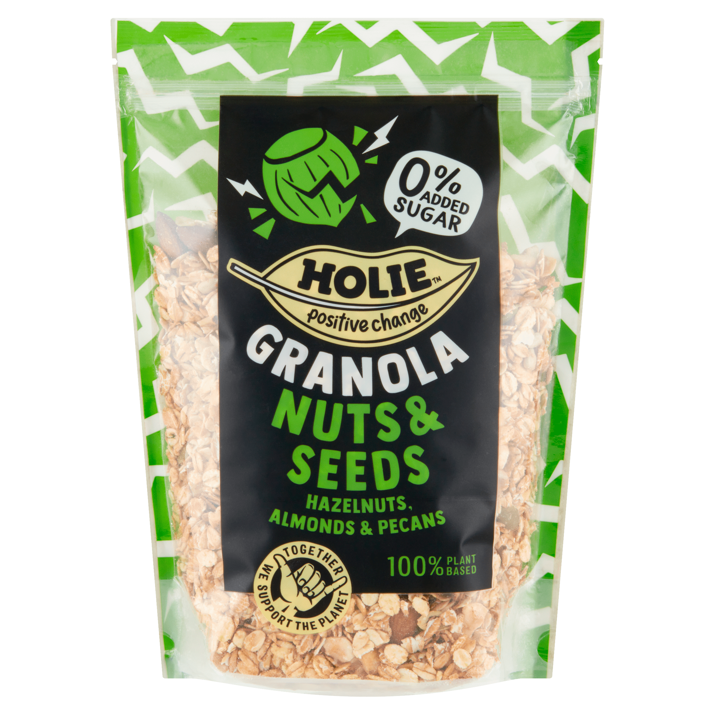 Geniet van de voedzame mix van Holie’s Granola Nuts & Seeds, een kleurrijke combinatie van volwaardige granen, noten en zaden. Met een Nutri-Score A en een vegan recept, is deze granola perfect voor een gezonde start van je dag. Bewaar de granola op een koele, droge plaats en geniet van een lekkere crunch in je ontbijt of als snack.
