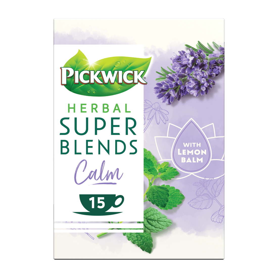 Geniet van de rustgevende Pickwick Super blends calm kruidenthee, een perfecte mix van citroenmelisse, kamille en lavendel. Deze 100% natuurlijke theemelange is cafeรฏnevrij en ideaal voor momenten van ontspanning. Maak eenvoudig een heerlijke kop door kokend water toe te voegen en het zakje 3 tot 5 minuten te laten trekken. Met de Rainforest Alliance keurmerk ondersteun je ook nog eens duurzame landbouw.