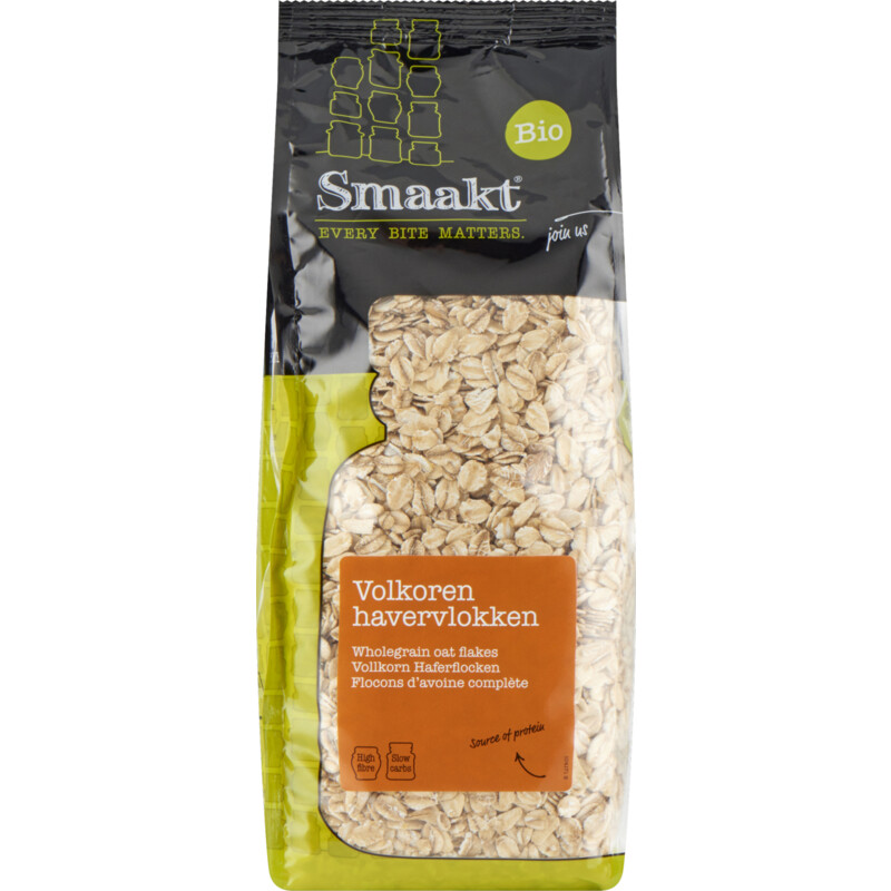 Geniet van de voedzame en vezelrijke Smaakt Volkoren Havervlokken. Deze biologische havervlokken hebben een heerlijke grove structuur, waardoor ze een extra bite geven aan je ontbijt. Perfect voor een snel, gezond begin van de dag of als verrijking van diverse gerechten. Laat ze een nachtje weken voor een smeuรฏge pap of voeg ze toe aan je smoothies. De mogelijkheden zijn eindeloos!