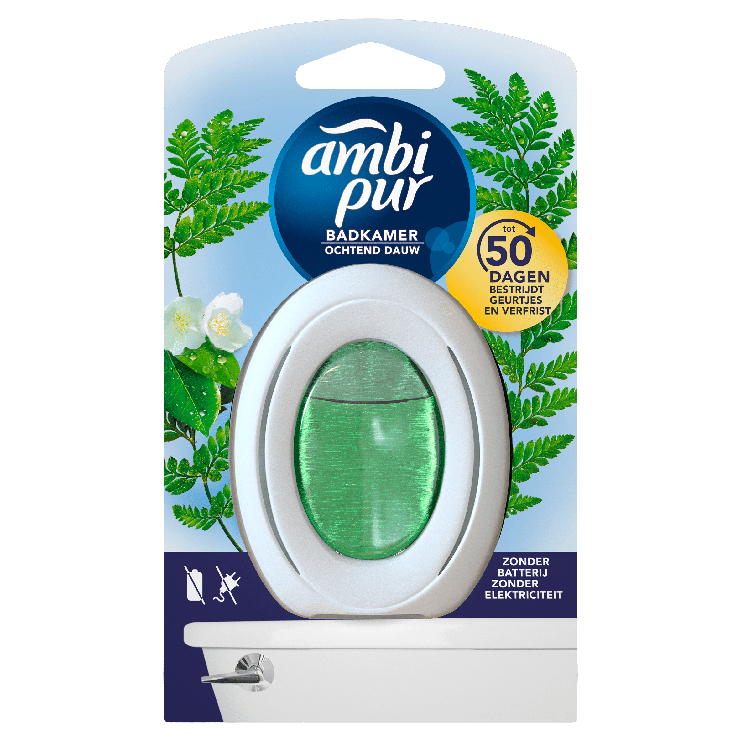 Ervaar de verfrissende geur van een vroege ochtendwandeling met de Ambipur Ochtenddauw wc continu. Deze unieke parfumverspreider met OdourClear-technologie neutraliseert geuren in de lucht en voorkomt dat ze zich hechten aan zachte oppervlakken zoals handdoeken en badmatten. Geniet tot wel 50 dagen van een lichte, frisse geur zonder elektriciteit of batterijen. Ideaal voor iedere badkamer of toilet, eenvoudig te activeren met een drukknop.