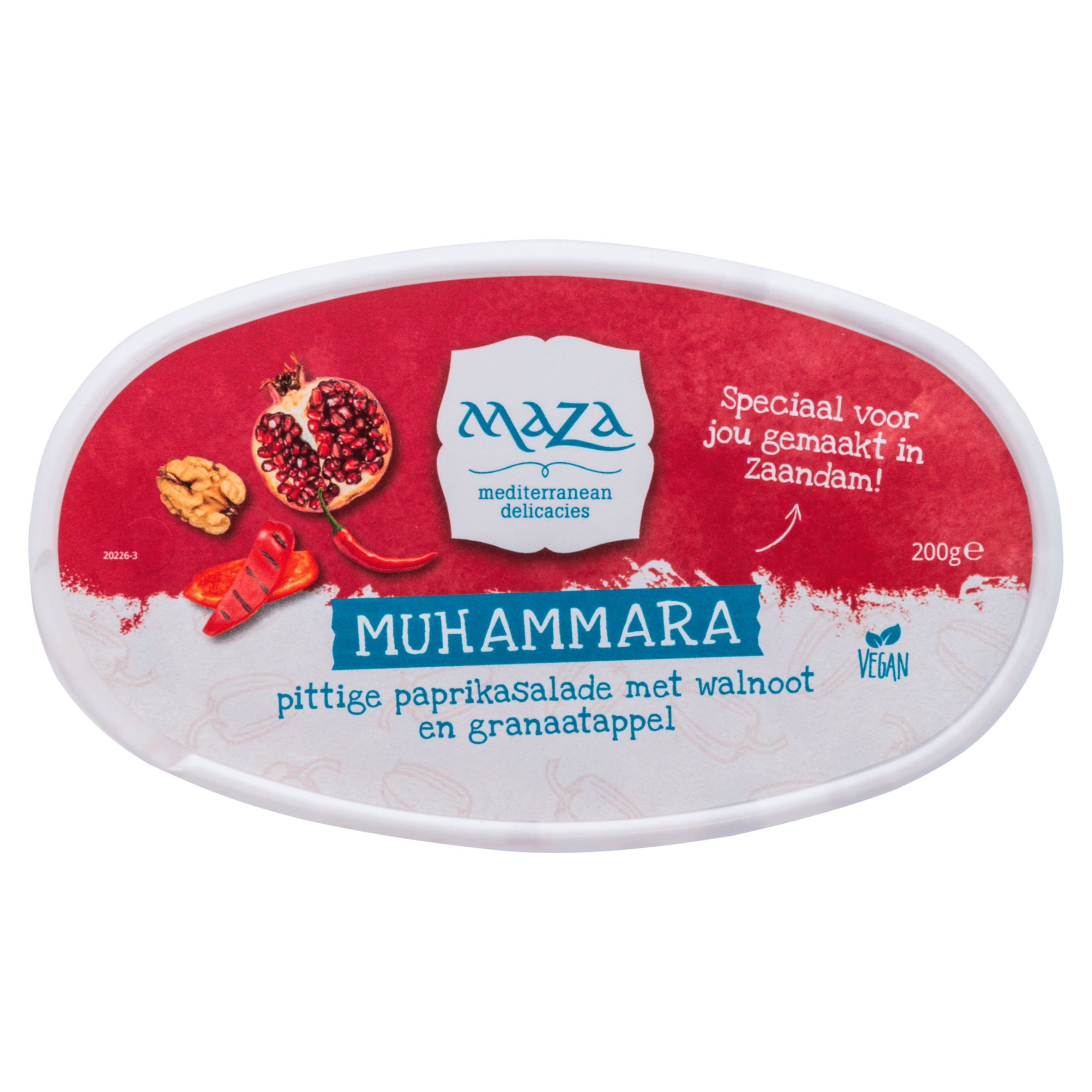 Geniet van de smaakvolle Maza Muhammara, een pittige paprikasalade met walnoot en granaatappel. Deze veganistische delicatesse is vrij van kunstmatige kleurstoffen en aroma’s en biedt een heerlijke combinatie van smaken. Gekoeld bewaren en na opening beperkt houdbaar.