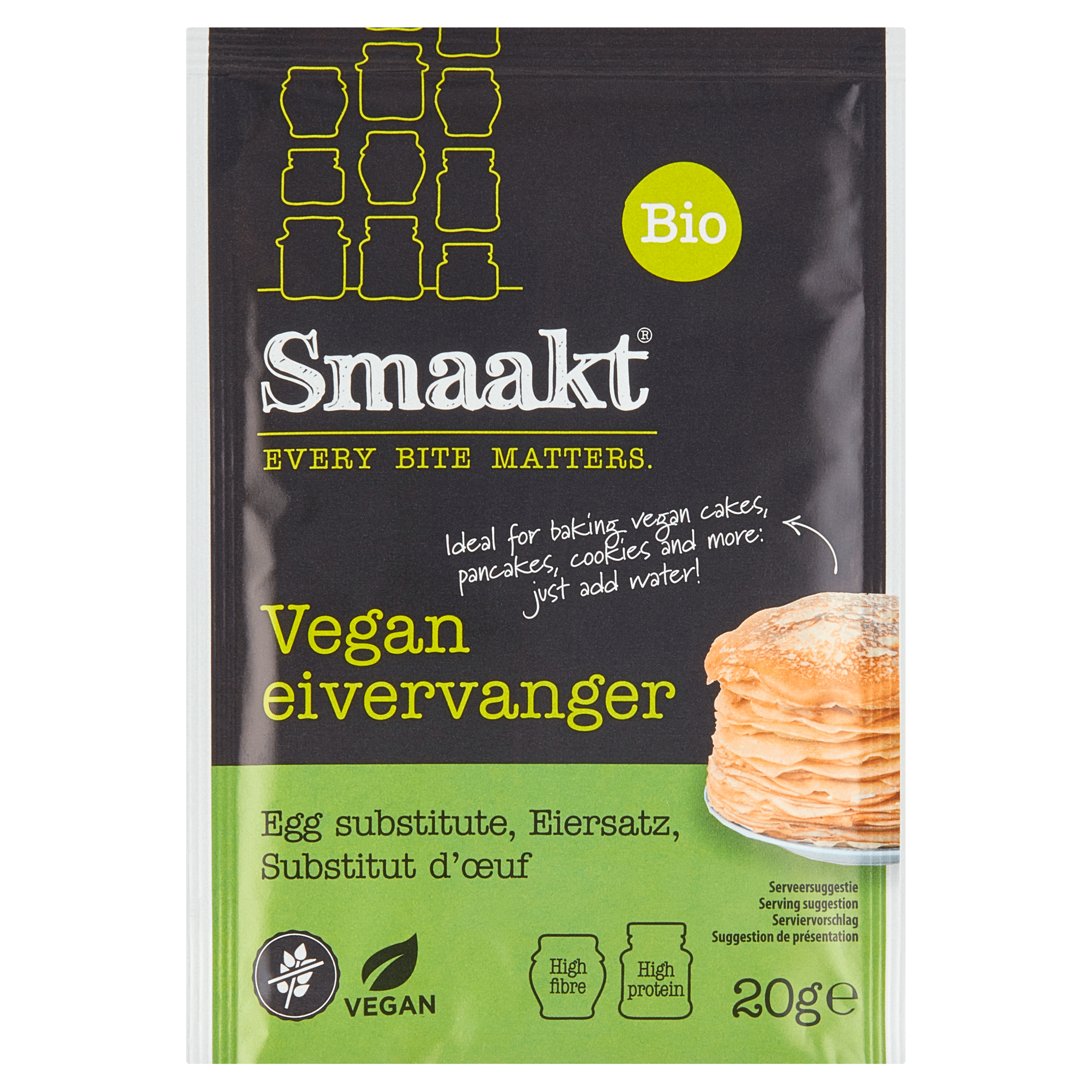 De Smaakt Vegan eivervanger is een biologisch alternatief voor eieren, perfect voor vegans en mensen met glutenintolerantie. Met slechts 5g poeder en 50ml bruiswater maak je een ei-achtige textuur die ideaal is voor het bakken van vegan cakes, pannenkoeken en koekjes. Dit product is gemakkelijk te bereiden en bevat natuurlijke ingrediรซnten, waardoor het een uitstekende keuze is voor elke bakliefhebber.