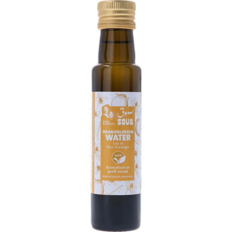 Geniet van de heerlijke geur en smaak van Souq Oranjebloesem Water, gemaakt van de bloesem van de bittere sinaasappel. Dit aromatische bloesemwater is perfect voor het verrijken van zoete gerechten zoals siropen, jams, gebak en koekjes. Begin met een paar druppels om de uitgesproken geur en smaak te ervaren. Het is ook een uitstekende toevoeging aan zelfgemaakte limonade voor een verrassende twist.