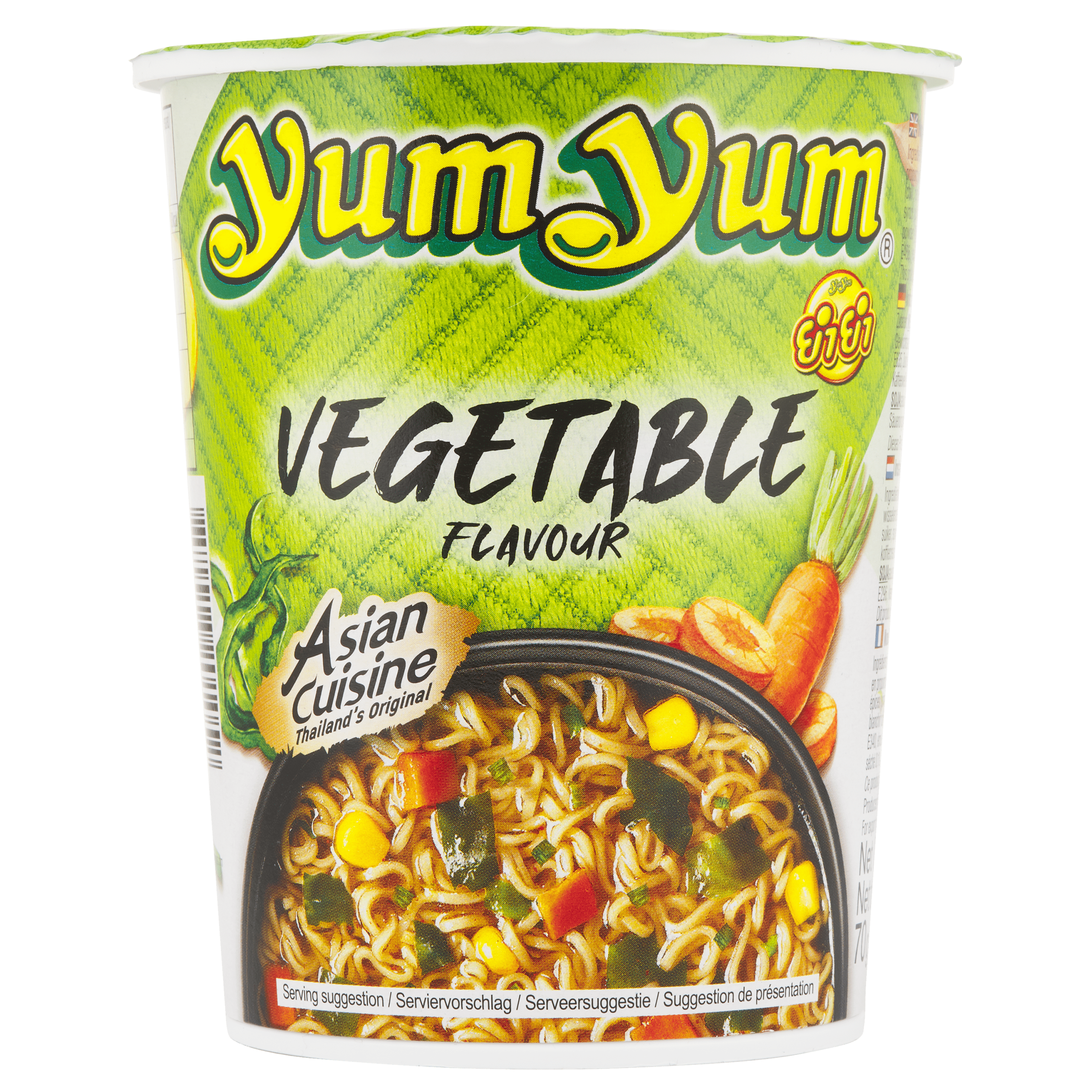 Geniet van de heerlijke Yum Yum Groente Bami Soep, eenvoudig te bereiden in slechts enkele minuten! Voeg kokend water toe aan de kruidenmix, laat de noedels 3 minuten trekken en roer het goed door. Deze instant noedels met groentensmaak zijn perfect voor een snelle lunch of snack, en bevatten een smakelijke mix van groenten zoals wortel en knoflook. Deze soep is ideaal om mee te nemen voor onderweg of als snelle opkikker thuis.