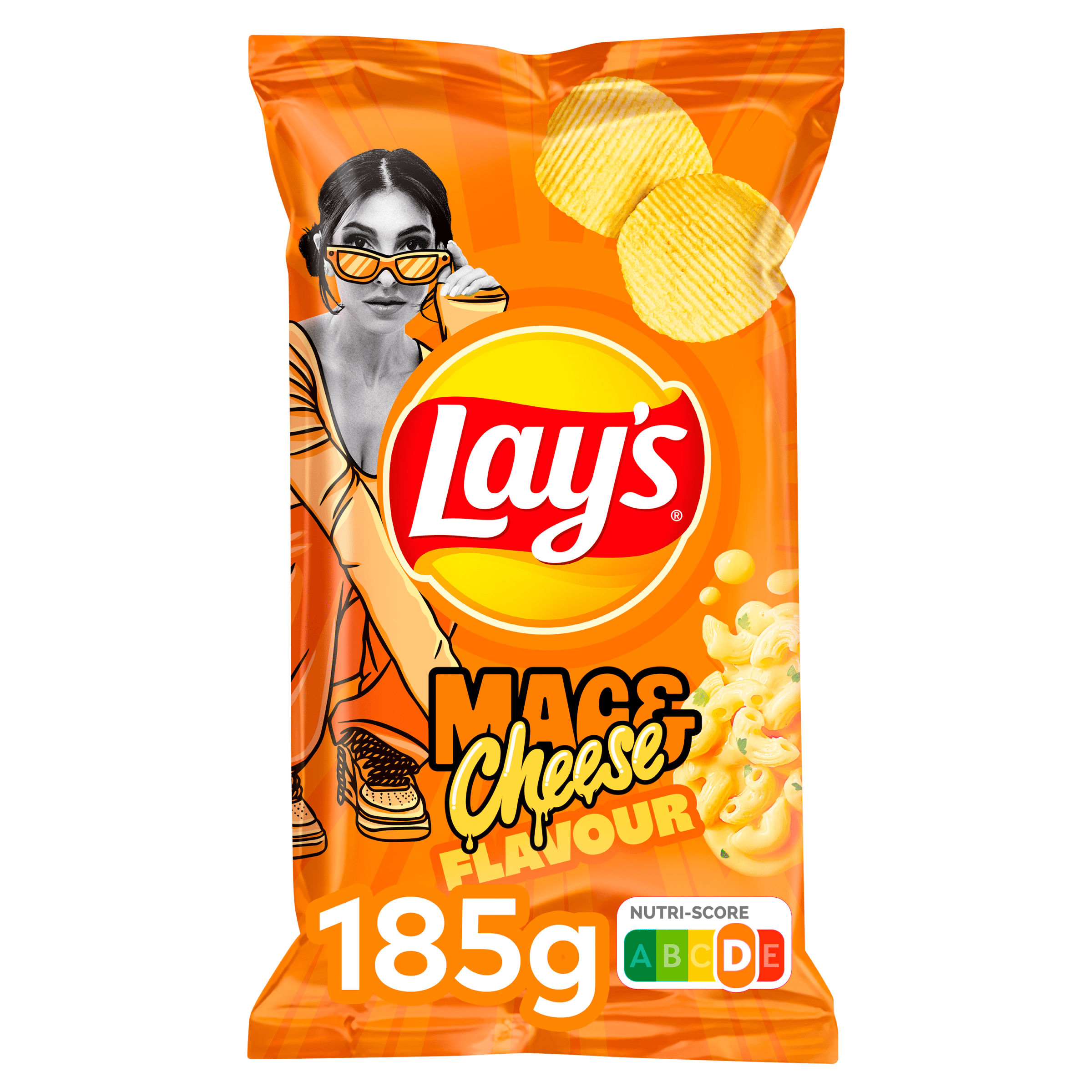 Geniet van Lay’s Mac & Cheese, de heerlijke geribbelde aardappelchips met een krachtige combinatie van macaroni- en kaassmaak. Deze chips zijn perfect voor de snackliefhebber die houdt van een unieke smaakervaring. Plus, met de Nutri-Score D, zijn ze een smakelijke keuze voor een tussendoortje. Probeer ook zeker de andere limited edition smaken en help mee bepalen welke blijft!