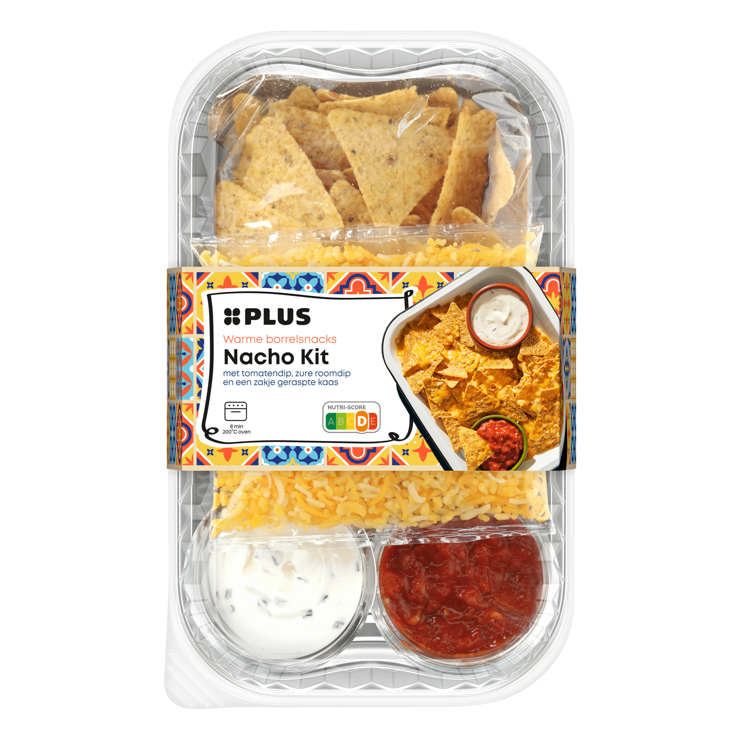Geniet van de heerlijke PLUS Nachokit, een perfecte borrelsnack voor elke gelegenheid. Deze set bevat gezouten maischips, een smakelijke mix van Goudse kaas en Cheddar kaas, en twee dips: een tomatendip met rode peper en een zure roomdip met bieslook. Eenvoudig te bereiden in de oven voor een warme en smaakvolle snack. Perfect voor een gezellige avond met vrienden of familie!