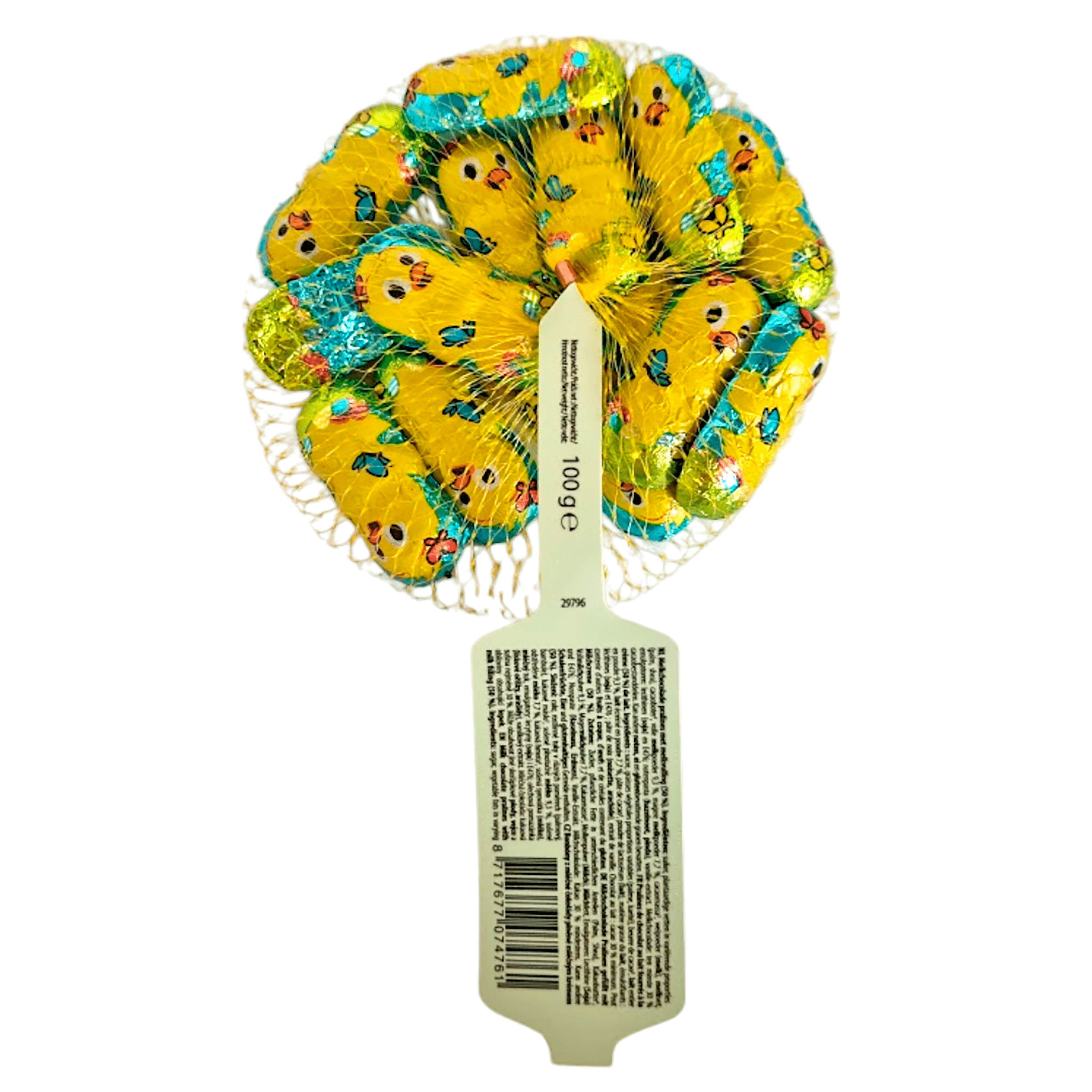 Geniet van de heerlijke ABS Sweets Paaskuikentjes, schattige melkchocolade pralines met een romige melkvulling. Deze lekkernijen zijn perfect voor de feestdagen en zijn verpakt in een netje voor extra speelsheid. Met ingrediรซnten die bijdragen aan de bescherming van het milieu, waaronder Rainforest Alliance Certified cacao, zijn ze een verantwoorde keuze voor zoetekauw en milieuverantwoordelijke genieters.