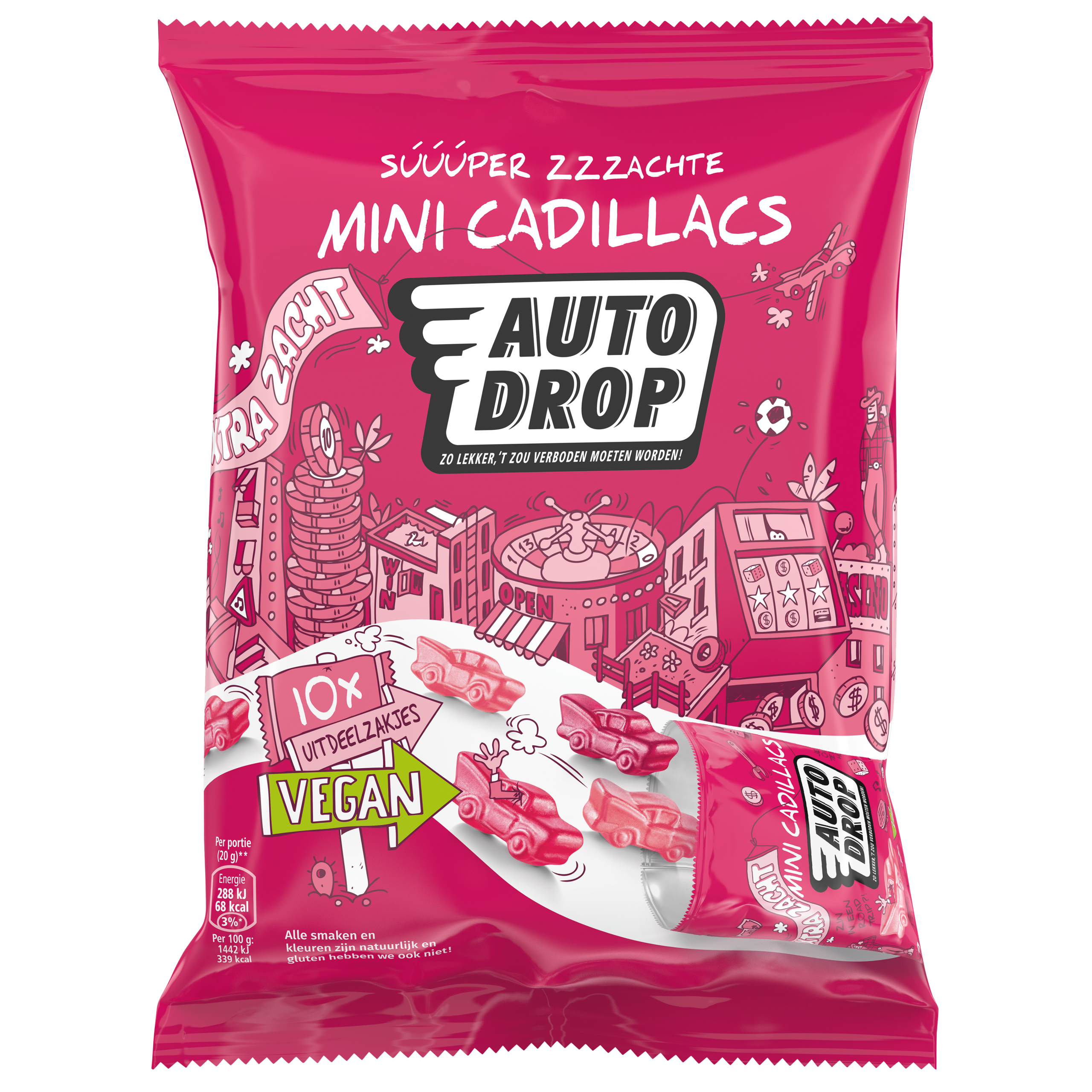 Geniet van de onweerstaanbare Autodrop Uitdeelzak Cadillacs! Deze veganistische snoepjes zijn niet alleen heerlijk zacht maar ook gemaakt van natuurlijke smaakstoffen en kleuren, zonder gluten. Perfect om te delen, hoewel je het eigenlijk al in รฉรฉn keer op wilt eten! Bewaar ze koel en droog en ervaar de smaak die je doet verlangen naar meer.