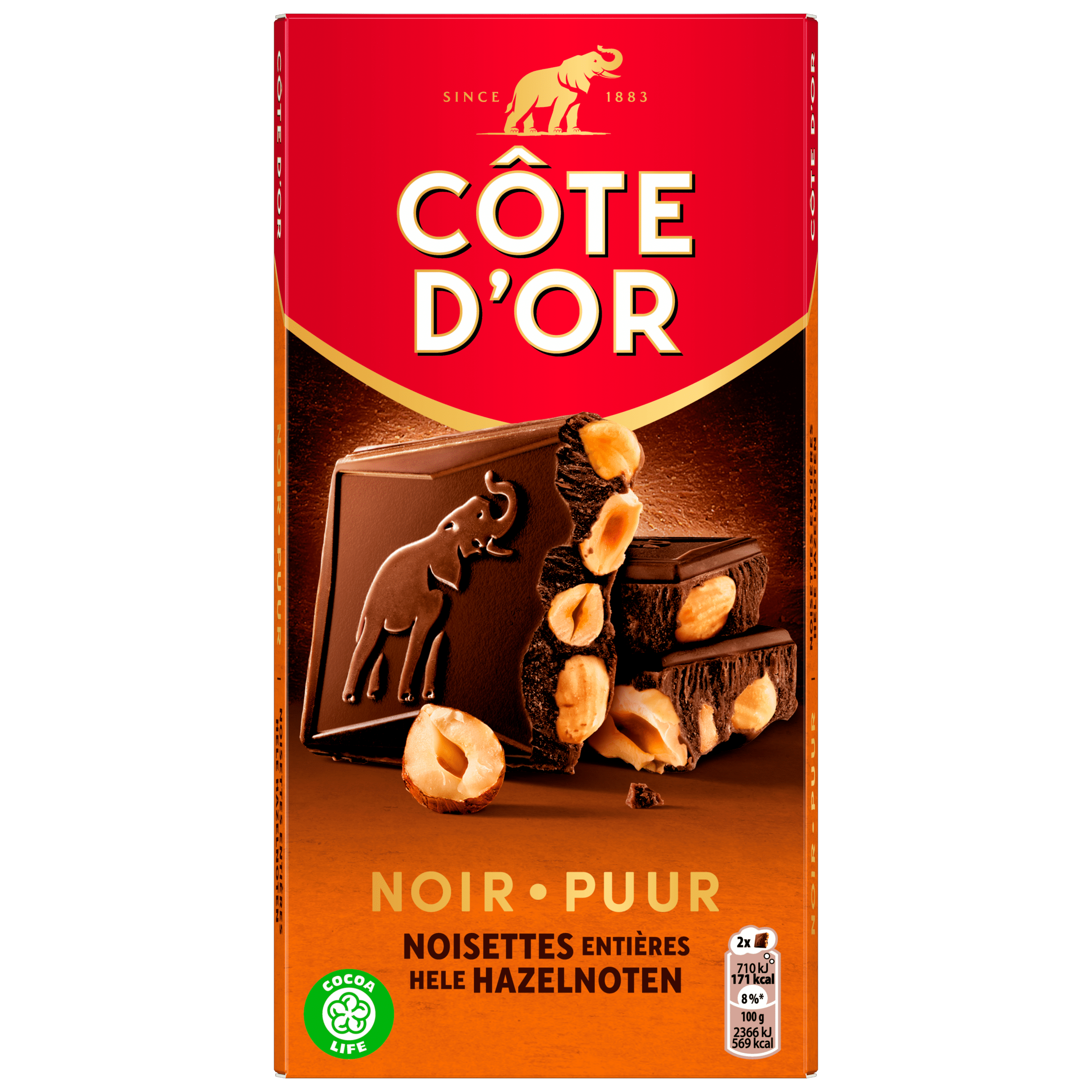 Côte d’Or Bloc chocoladereep puur hazelnoten – Plus