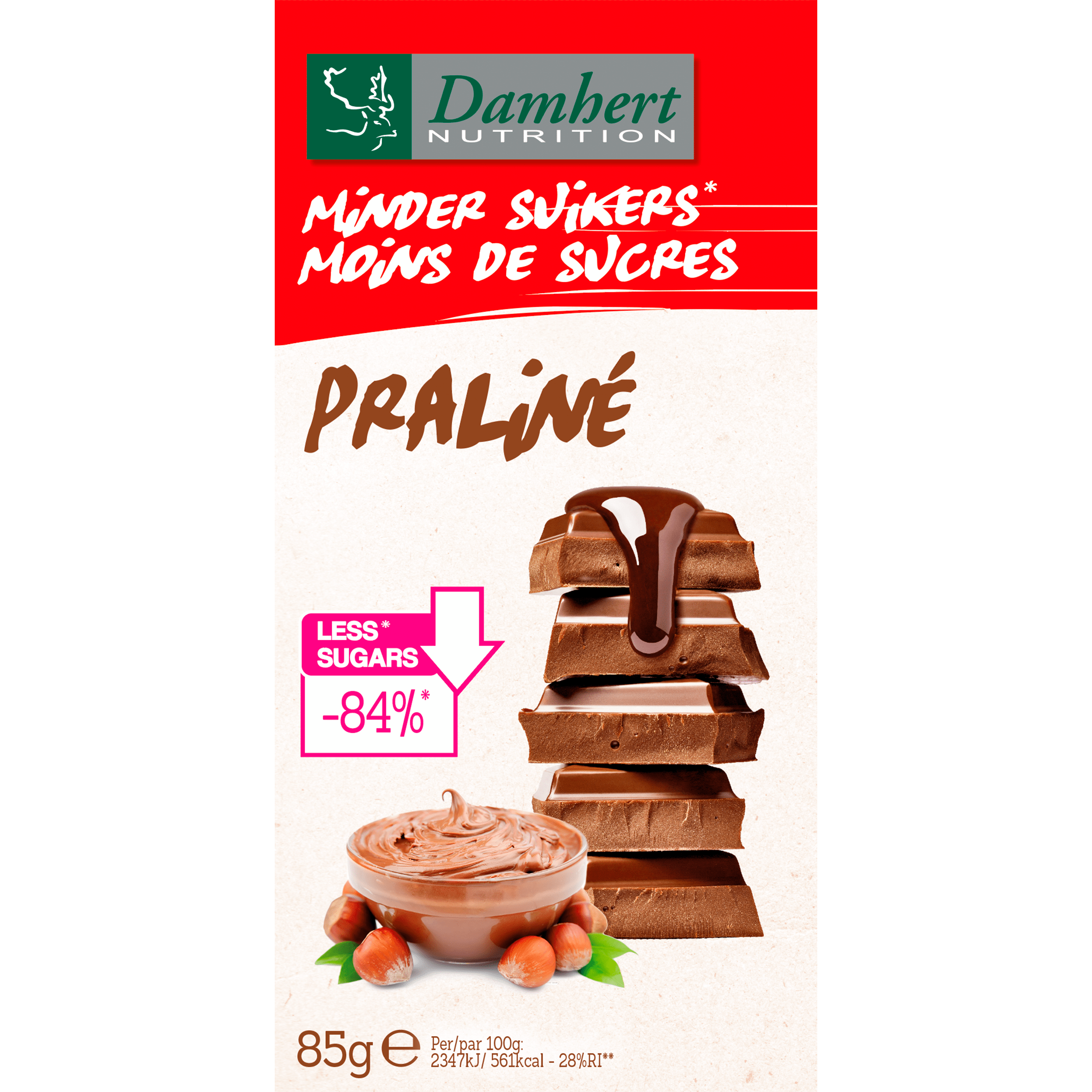 Damhert Chocoladereep Praliné Minder Suikers – Plus