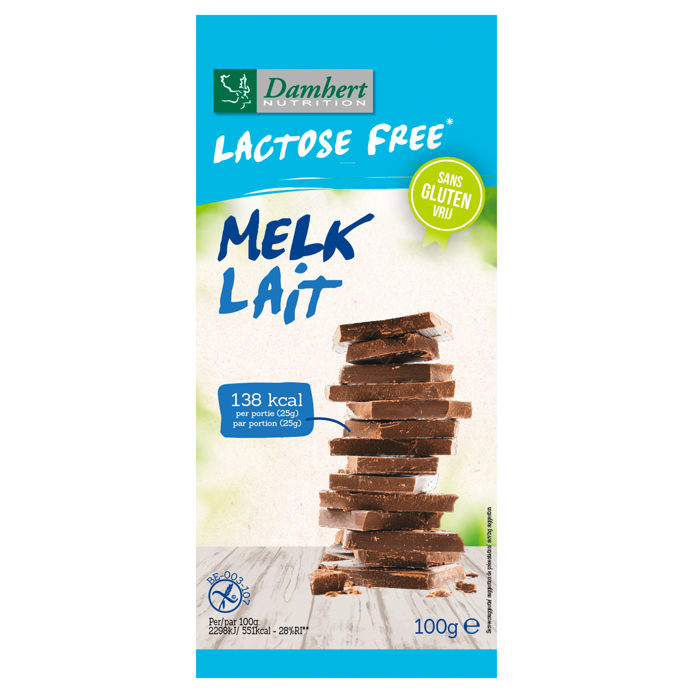 Damhert Lactosevrij chocoladereep melk – Plus