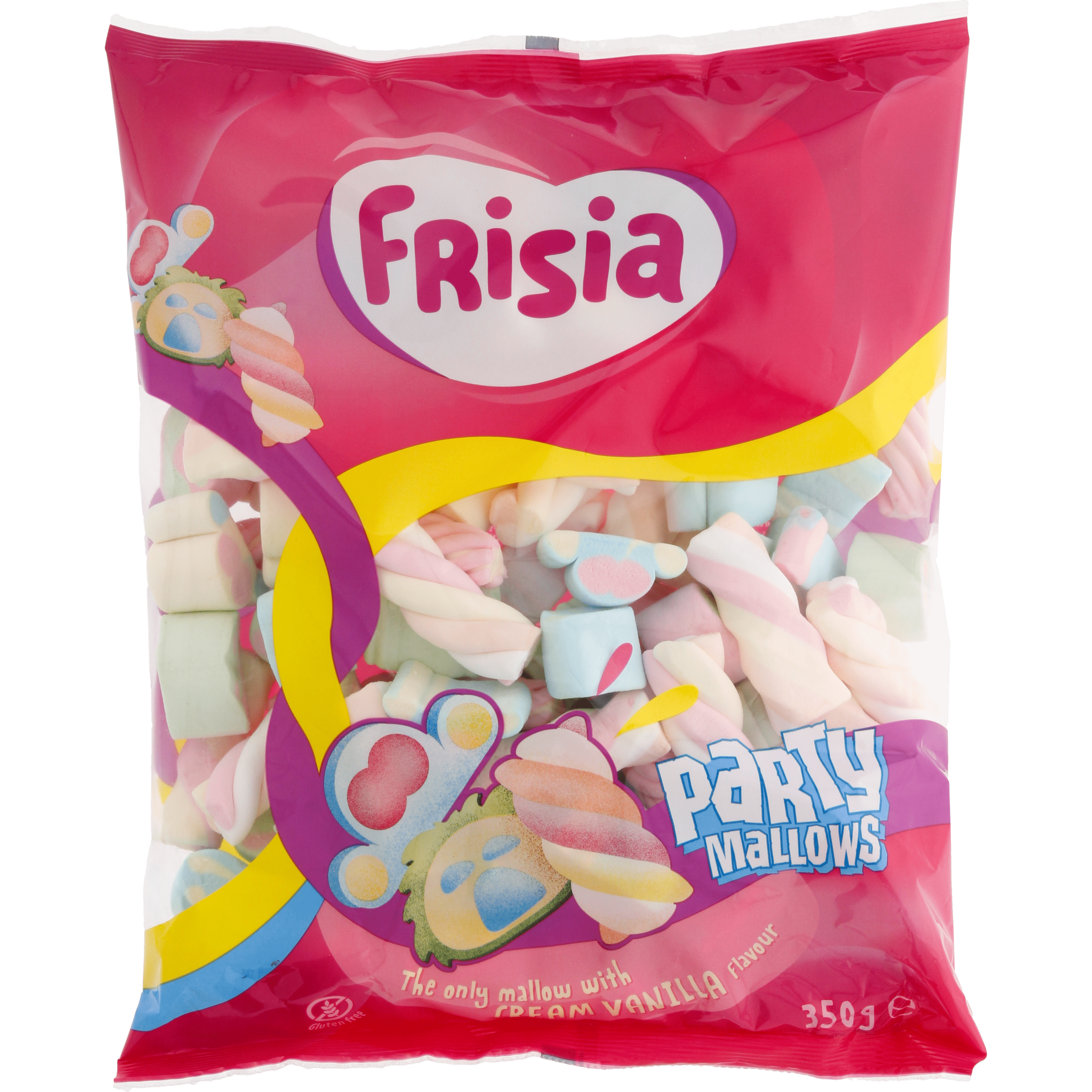 Maak van elke gelegenheid een feest met de Frisia Party Mallows! Deze vrolijke en kleurrijke spekkenmix met een zachte textuur is glutenvrij en heeft een heerlijke roomvanille smaak. Perfect voor feestjes en zoete momenten!