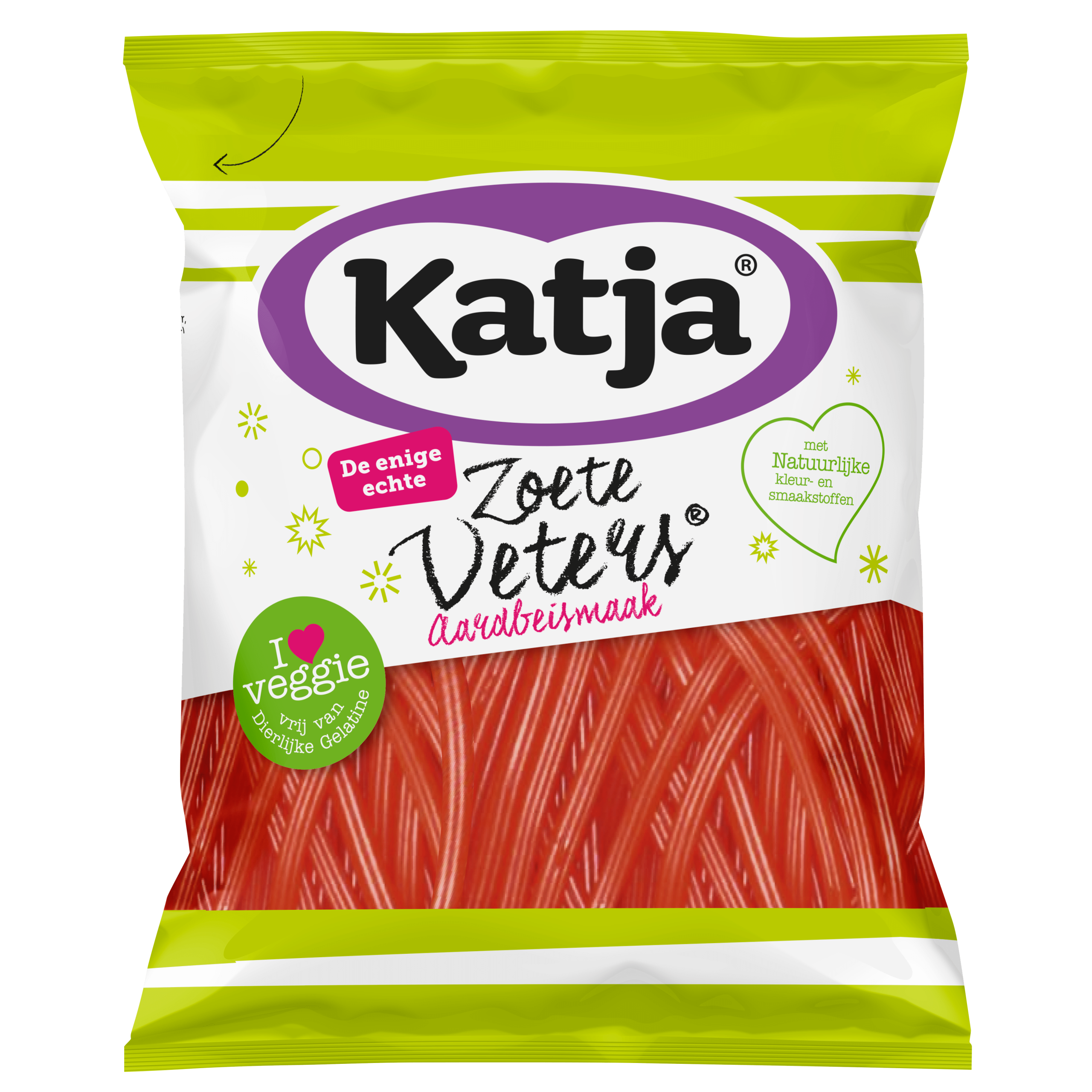 Geniet van de heerlijke Katja Zoete Veters in de smaak aardbeien! Deze veganistische lekkernij is gemaakt met natuurlijke kleur- en smaakstoffen en bevat geen dierlijke gelatine. Perfect als snack of zoete traktatie voor jong en oud.