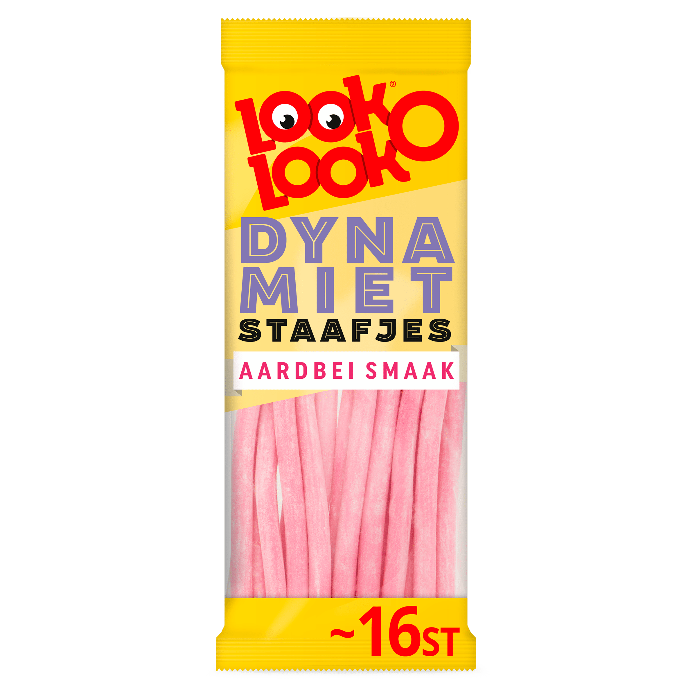 Geniet van de heerlijke Look-O-Look Dynamietstaafjes in de smaak aardbei! Deze snoepstaafjes zijn knapperig van buiten en zacht van binnen, met een verrassende fruitkern. Iedere zak bevat ongeveer 16 stuks, perfect om te delen of om zelf van te genieten. Ideaal voor in de snoeppot thuis.