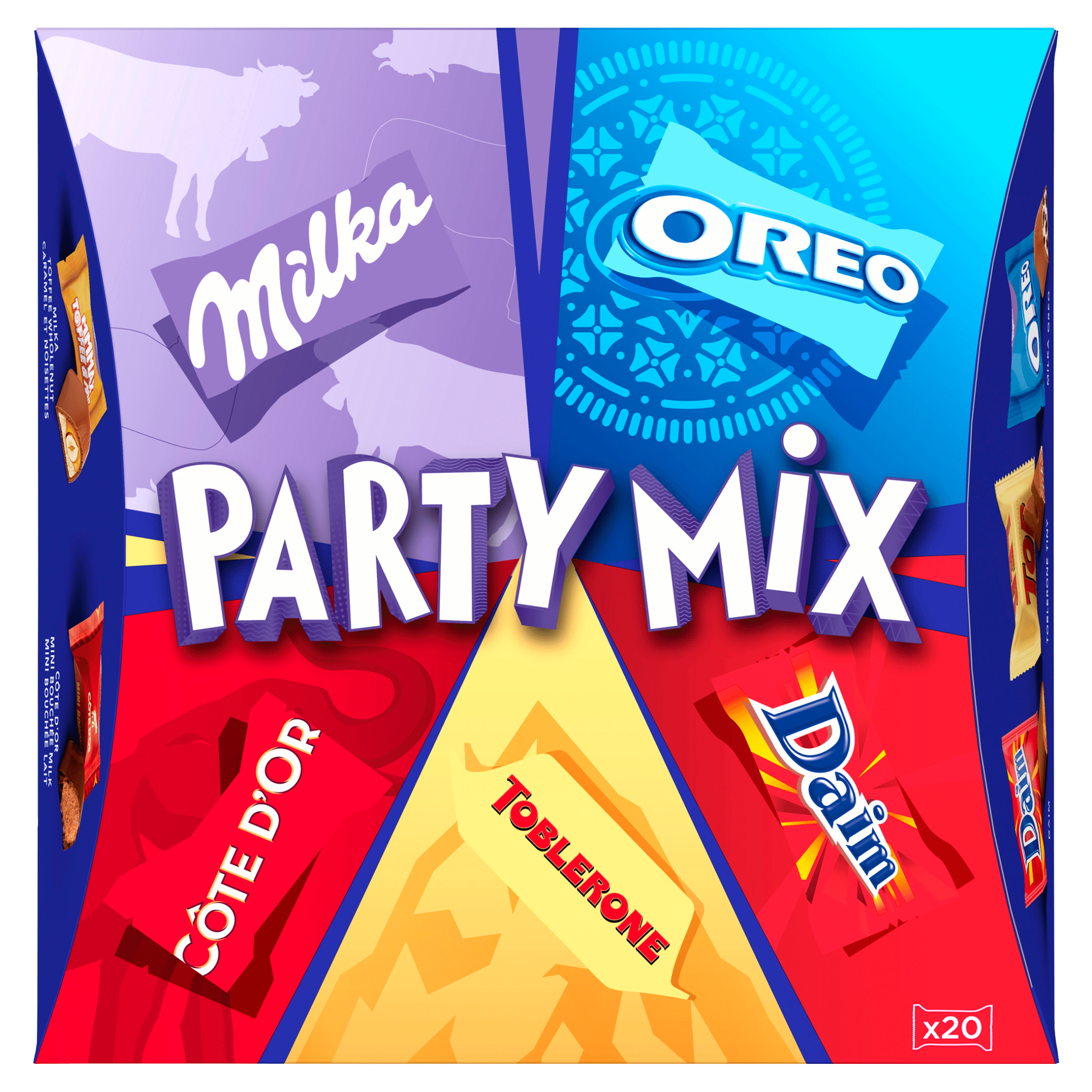 Geniet van de heerlijke Milka Party mix chocolaatjes, een assortimentsdoos vol met jouw favoriete chocolade! Deze verrassende mix bevat 4x Daim, 2x Milka Oreo White, 3x Cรดte d’Or Mini Bouchรฉe Melk, 3x Toblerone Tiny, 3x Milka Oreo en 3x Milka Toffee Wholenut. Perfect voor elke gelegenheid en individueel verpakt, zodat je ze gemakkelijk kunt delen. Bewaar ze droog en uit de warmte voor maximale smaakbeleving.