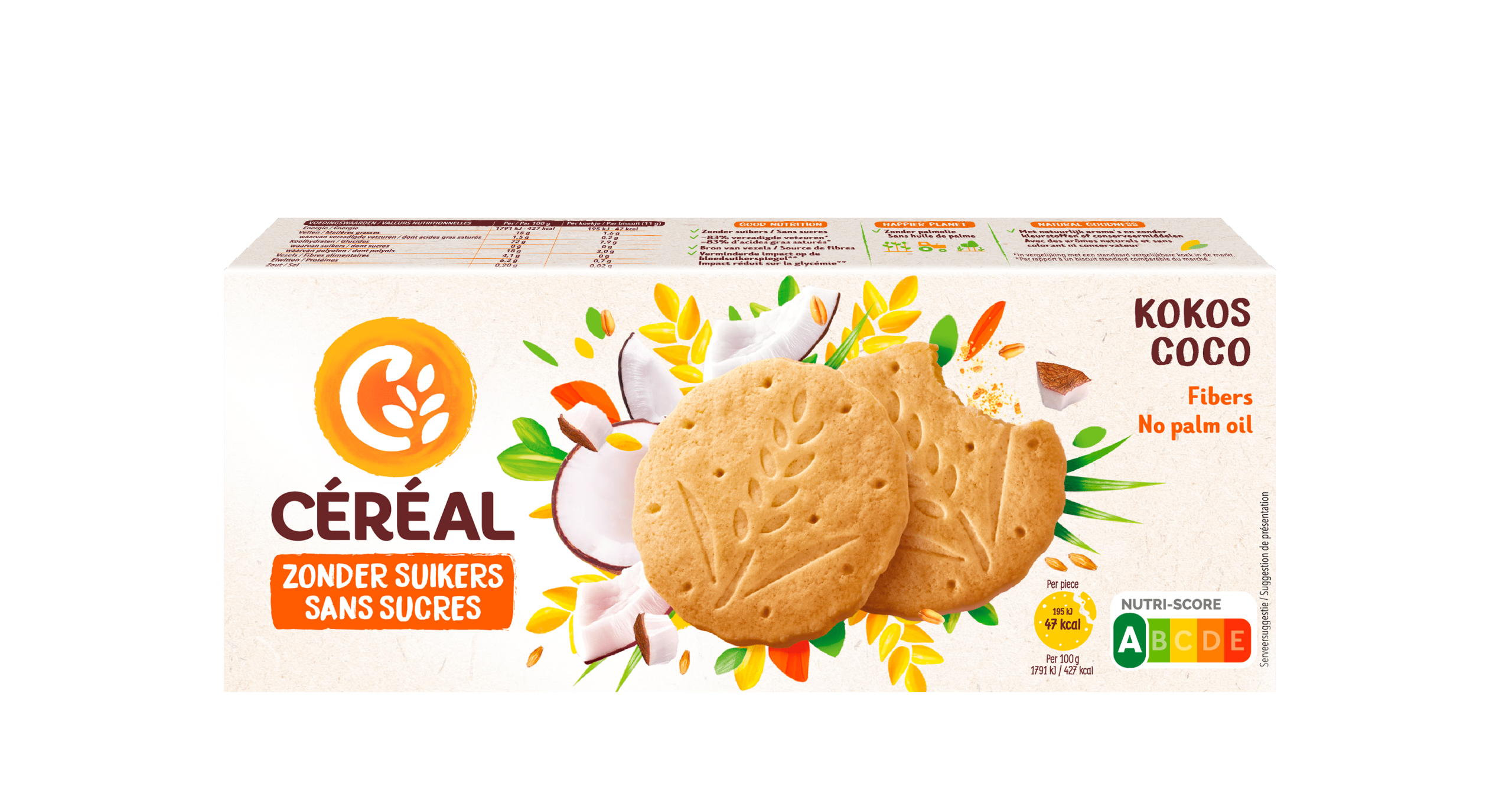 Geniet van de heerlijke smaak van Cรฉrรฉal Koekjes met kokos, speciaal ontworpen zonder toegevoegde suikers en met een laag vetgehalte. Deze koekjes zijn niet alleen een perfect tussendoortje, maar ook een bron van vezels en hebben 85% minder verzadigde vetten in vergelijking met standaard koekjes. Met de gebruiksvriendelijke verpakking, zijn ze ideaal voor onderweg of als gezonde snack. Perfect voor iedereen die zijn suikerinname wil of moet beperken, zonder in te boeten op smaak.