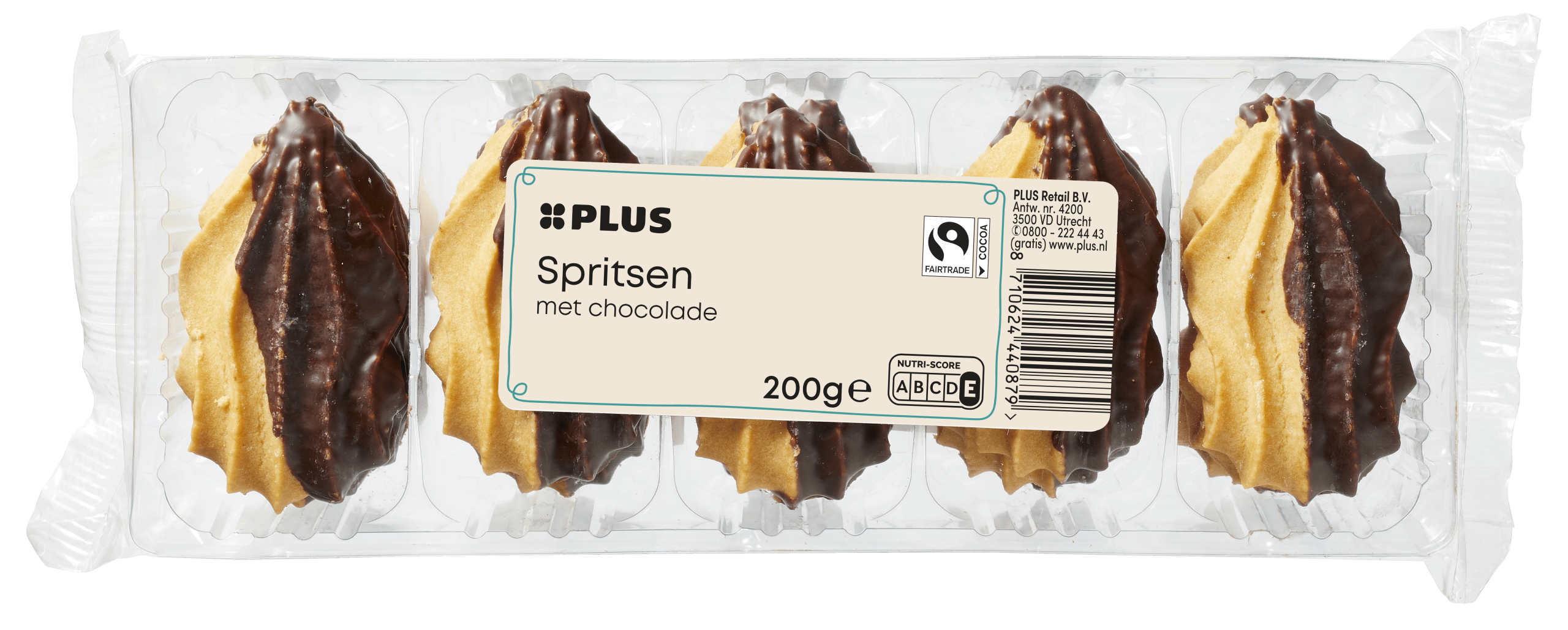 Geniet van de heerlijke PLUS Chocolade sprits Fairtrade, lekker krokante koekjes met een romige laag chocolade. Deze vegetarische lekkernij is perfect voor bij de koffie of als smaakvolle snack. Gemaakt met Fairtrade ingrediรซnten, dus je kiest ook nog eens bewust. Bewaar de spritsen droog en donker om de versheid te waarborgen.