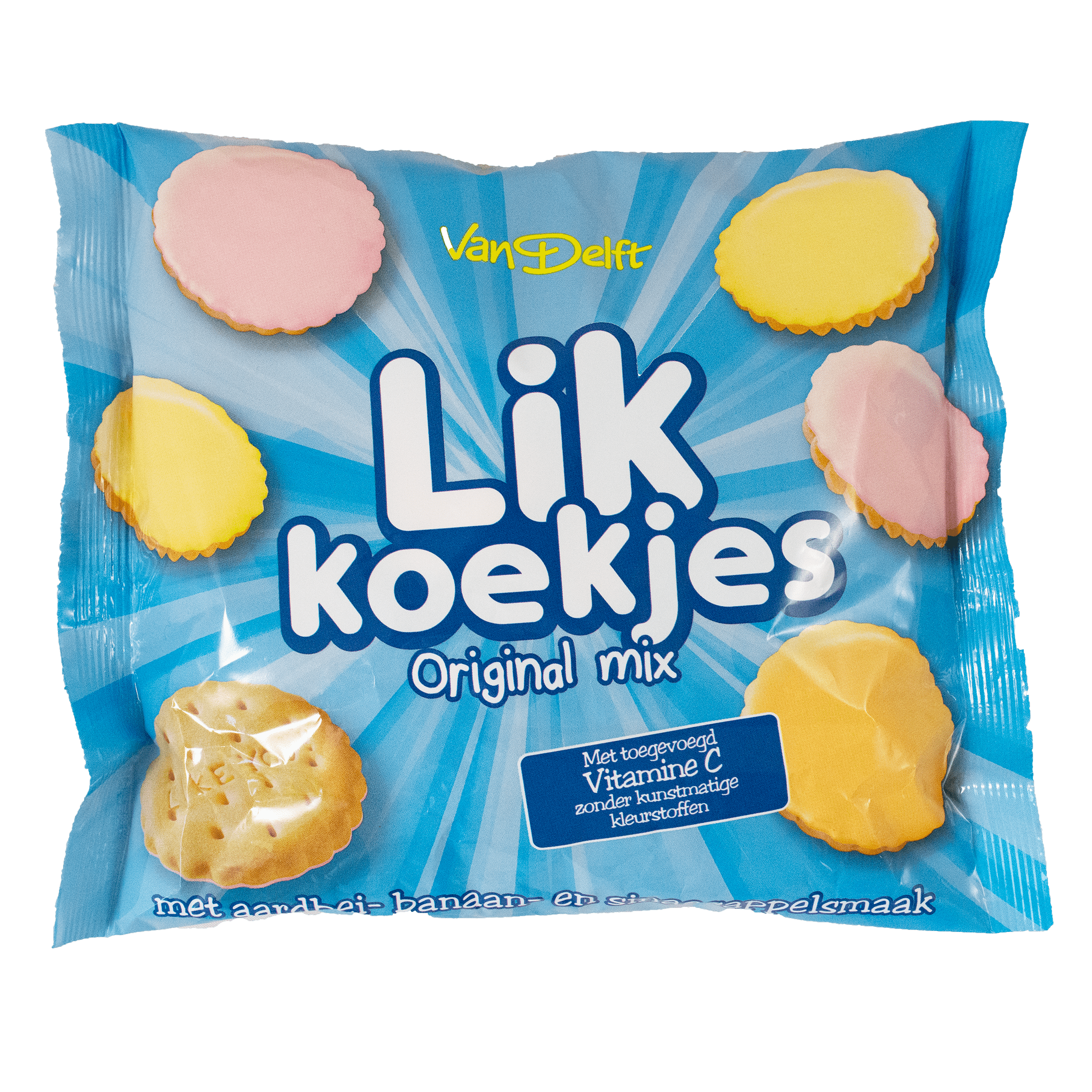 Geniet van de heerlijke Van Delft Likkoekjes, een smaakvolle traktatie die perfect is voor bij de koffie of als een zoete snack tussendoor. Deze luchtige biscuits zijn glacรฉerd met fruitsmaak en verrijkt met vitamine C. Bewaar ze koel en droog voor de beste kwaliteit.